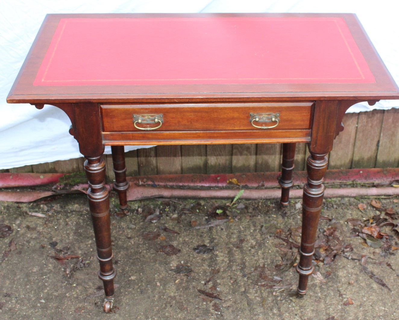 Walnut One Drawer Side Table with Red Leather Top c.1910