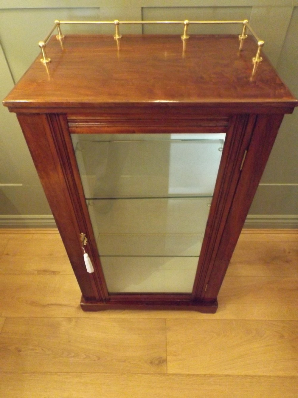 Walnut Pier Display Cabinet with Brass Gallery c.1890