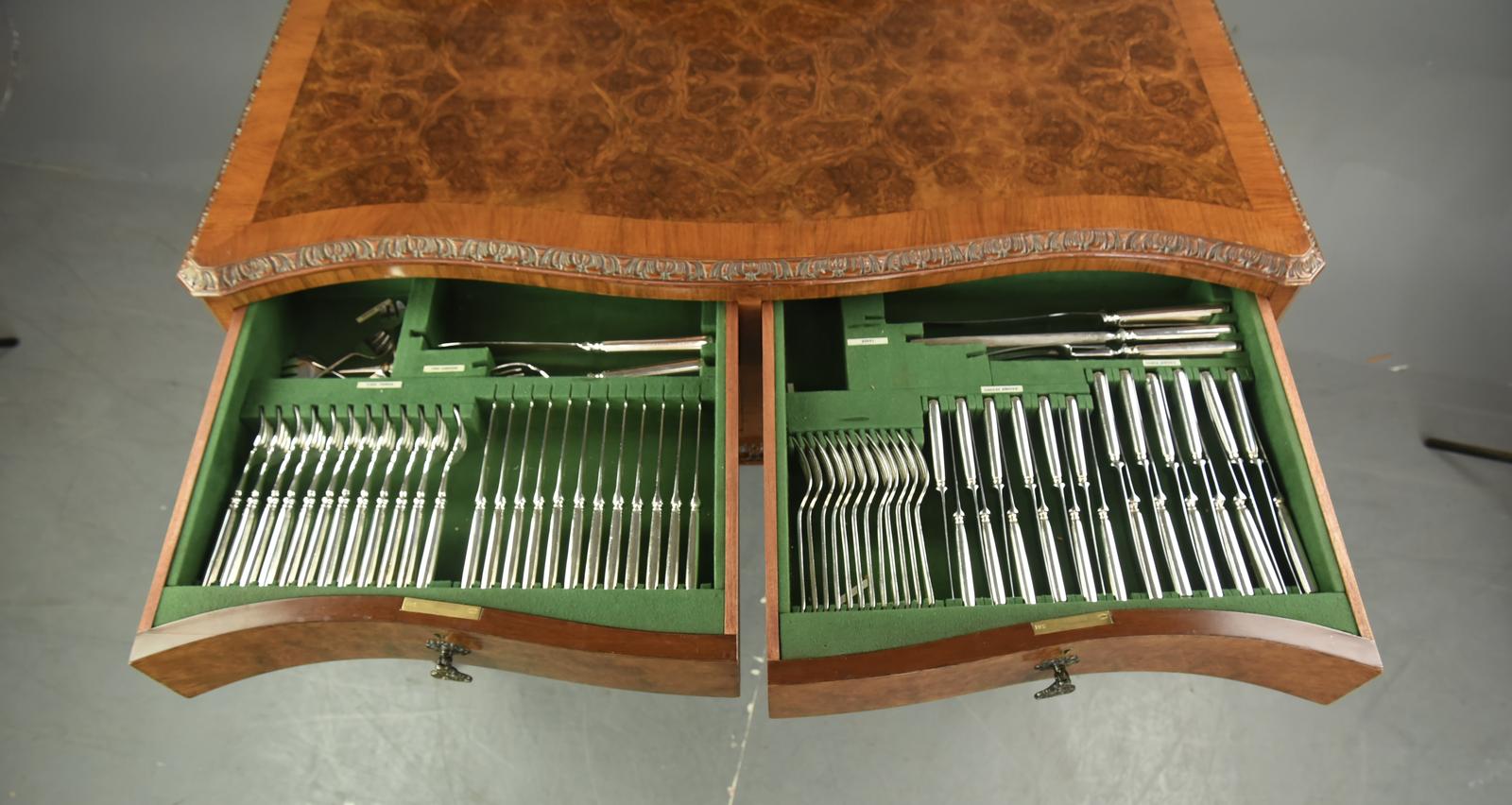 Walnut Queen Anne Style Canteen of Cutlery 12 Place Setting c.1920