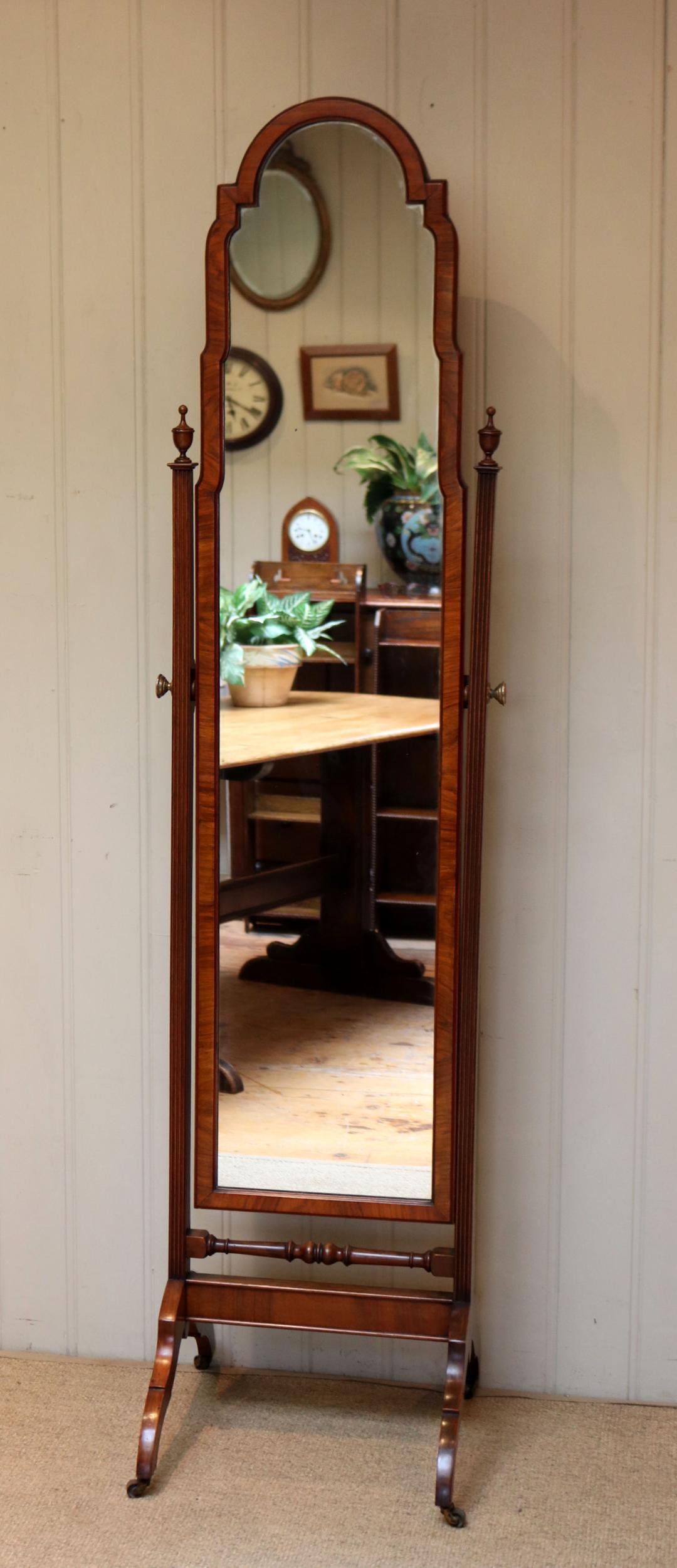 Walnut Queen Anne Style Cheval Mirror