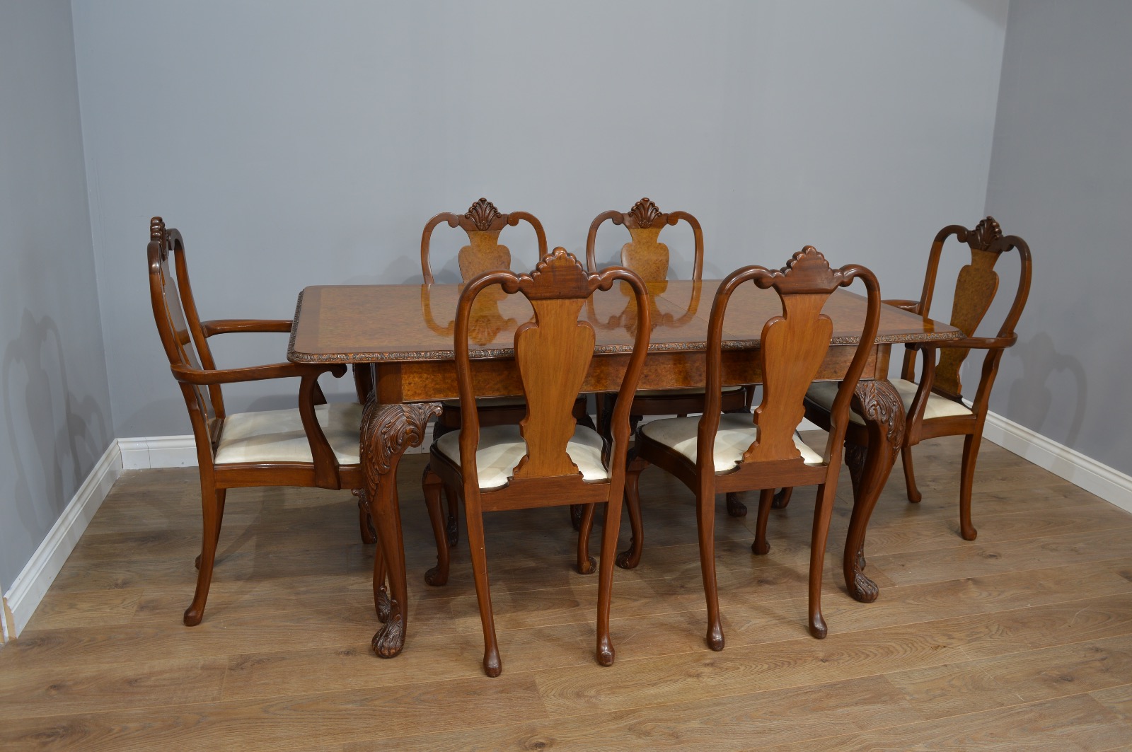 Walnut Queen Anne Style Dining Table & Six 6 Chairs (1 of 1)