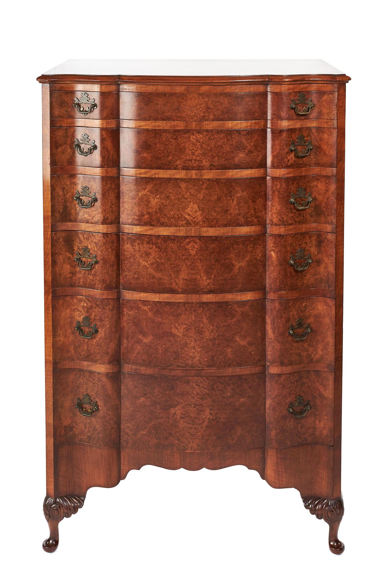 Walnut Queen Anne Style Shaped Front 6 Drawer Chest c.1930 (1 of 6)