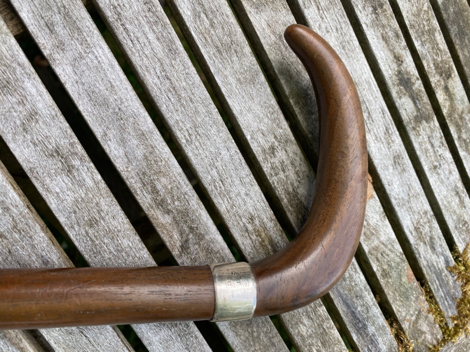 Walnut & Rosewood Walking Stick with Silver HM Collar (1 of 4)