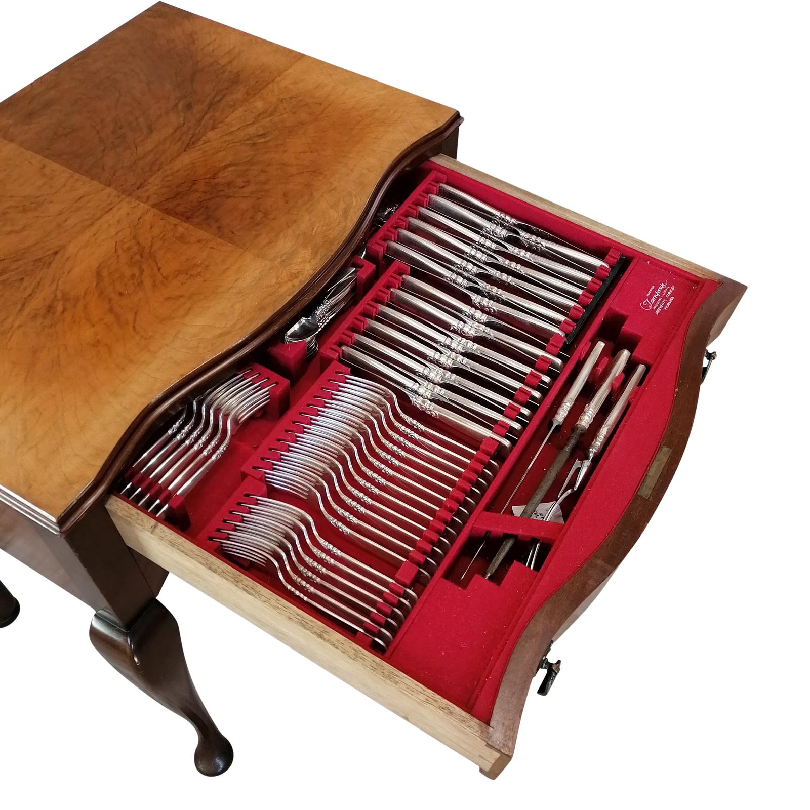 Walnut Serpentine Fronted Canteen of Cutlery, 12 Piece Setting