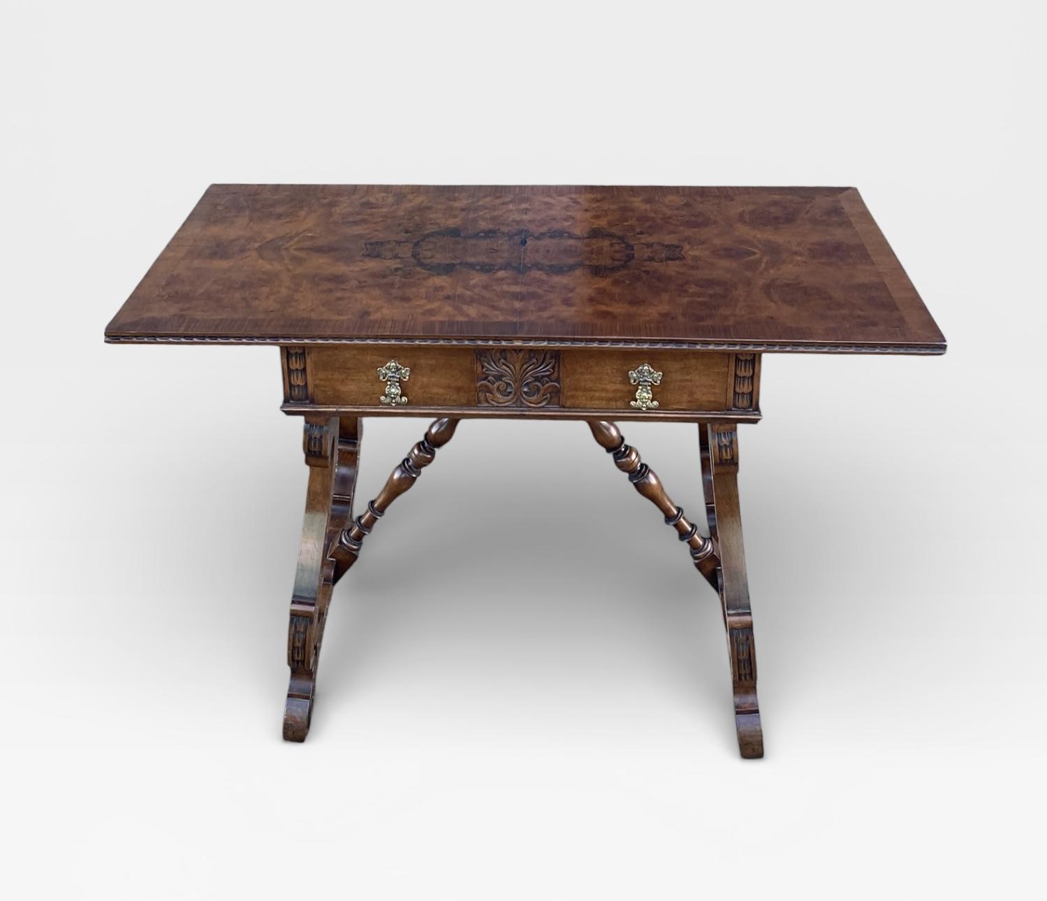 This Walnut Spanish Baroque-style Lyre-leg Table is located in East Sussex, United Kingdom