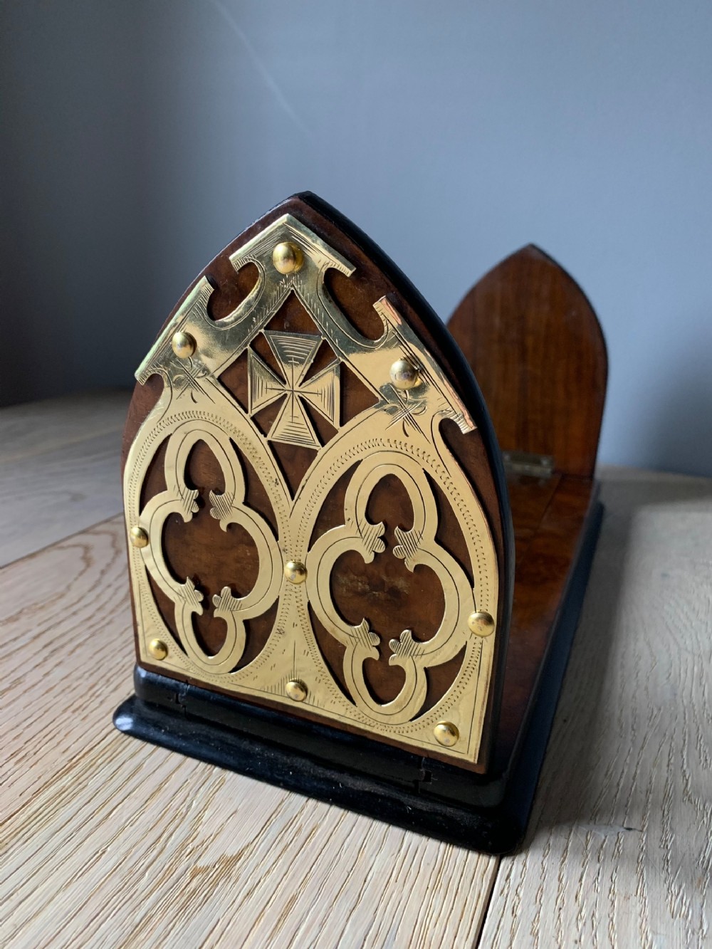 Walnut Veneer & Brass Book Slide c.1890