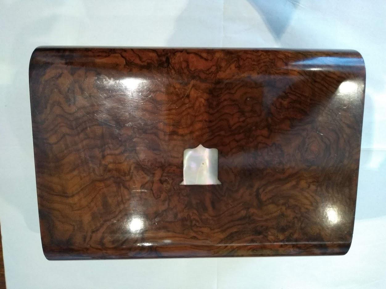 Walnut Wood Sewing Box with Mother of Pearl Inlay