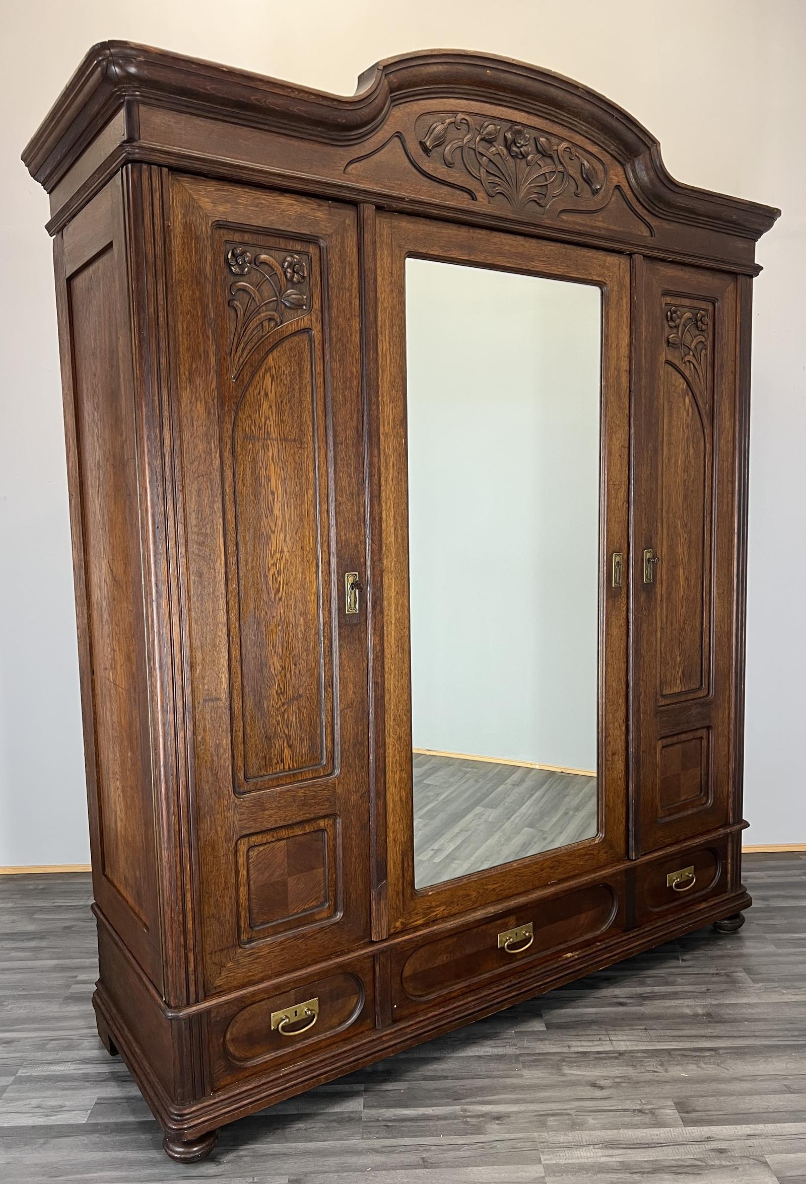 Wardrobe Antique French Carved 3 Door Mirrored Oak Closet Cabinet (LOT 3840)