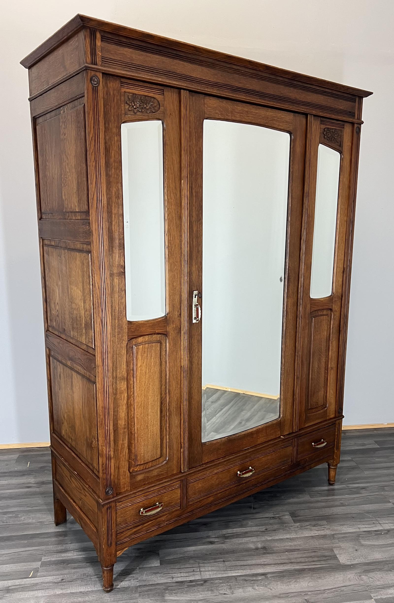 Wardrobe Antique French Carved Mirrored Oak Closet Armoire (LOT 3843)