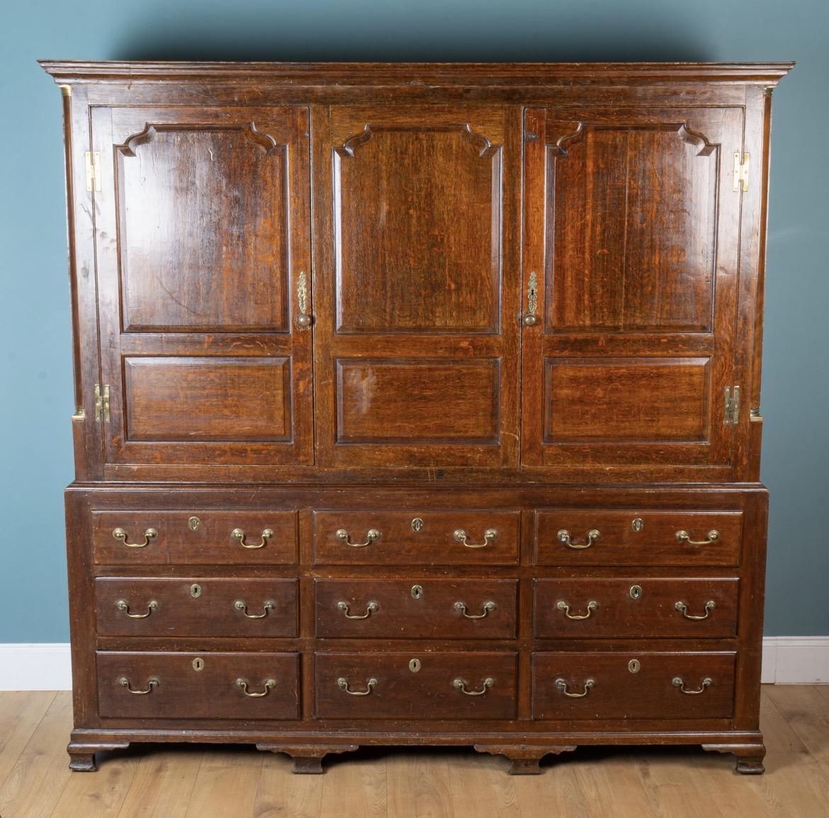 A very fine example of a Georgian oak house keepers cupboard wardrobe of triple proportions, which is quite rare.