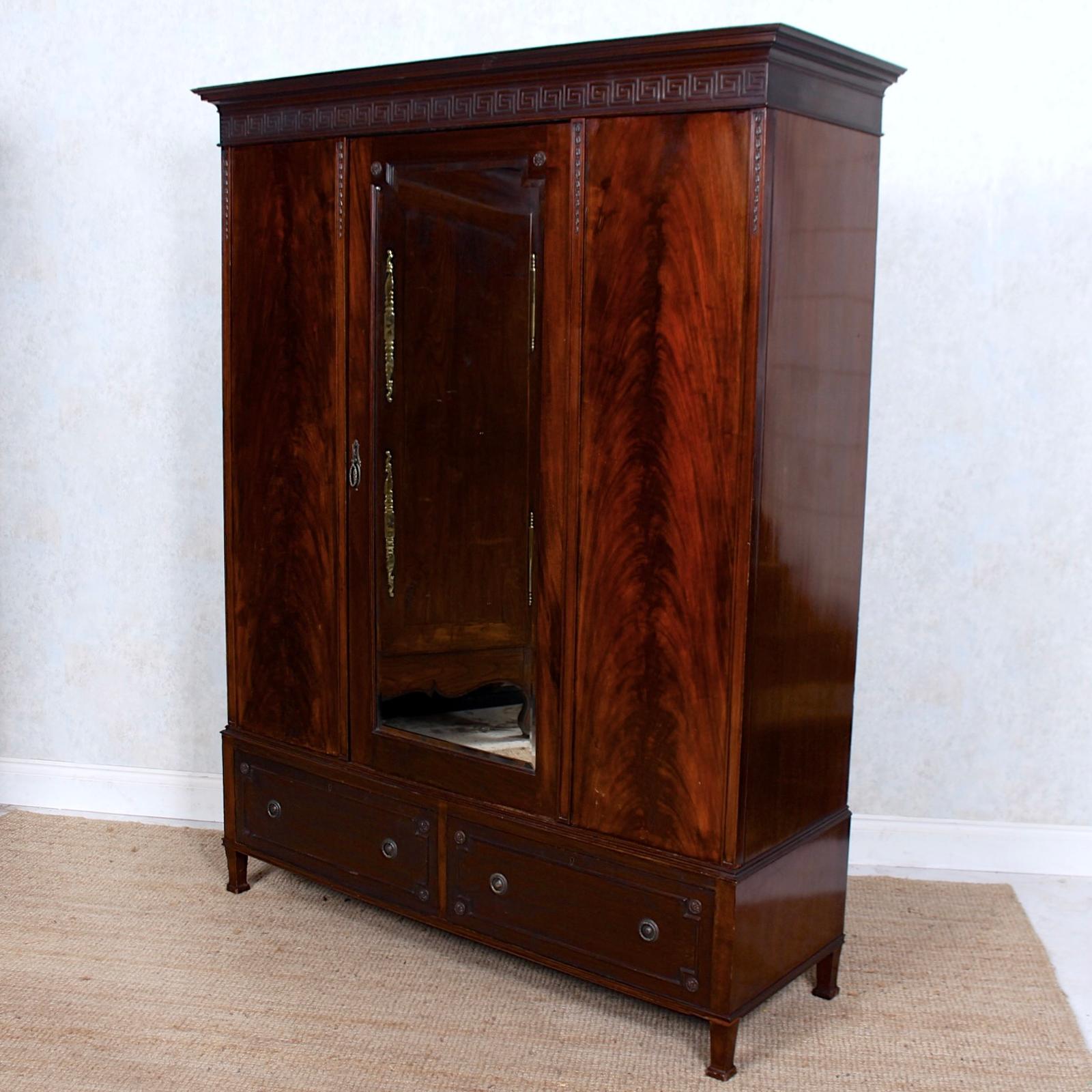 Wardrobe Flamed Mahogany Mirrored Victorian Triple