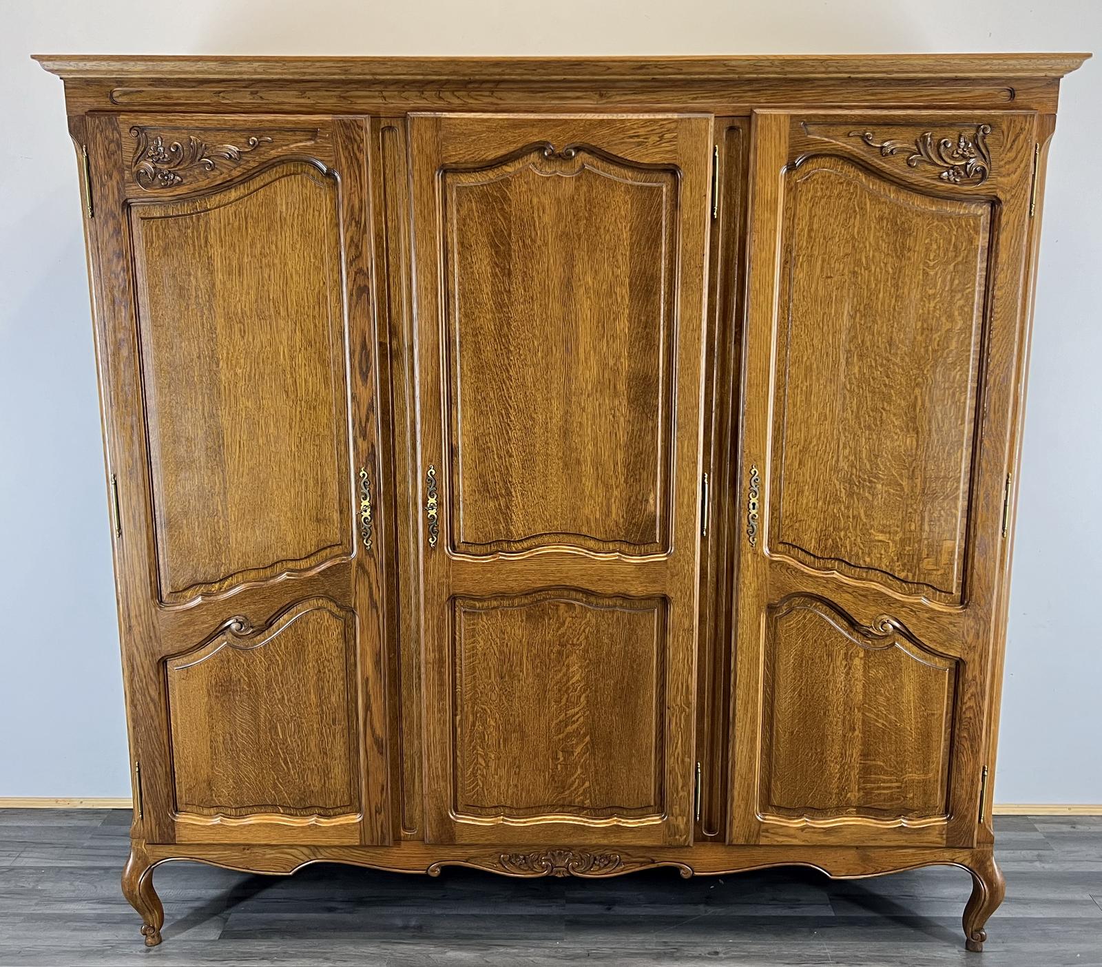 Wardrobe French Vintage Oak 3 Door Armoire Retro