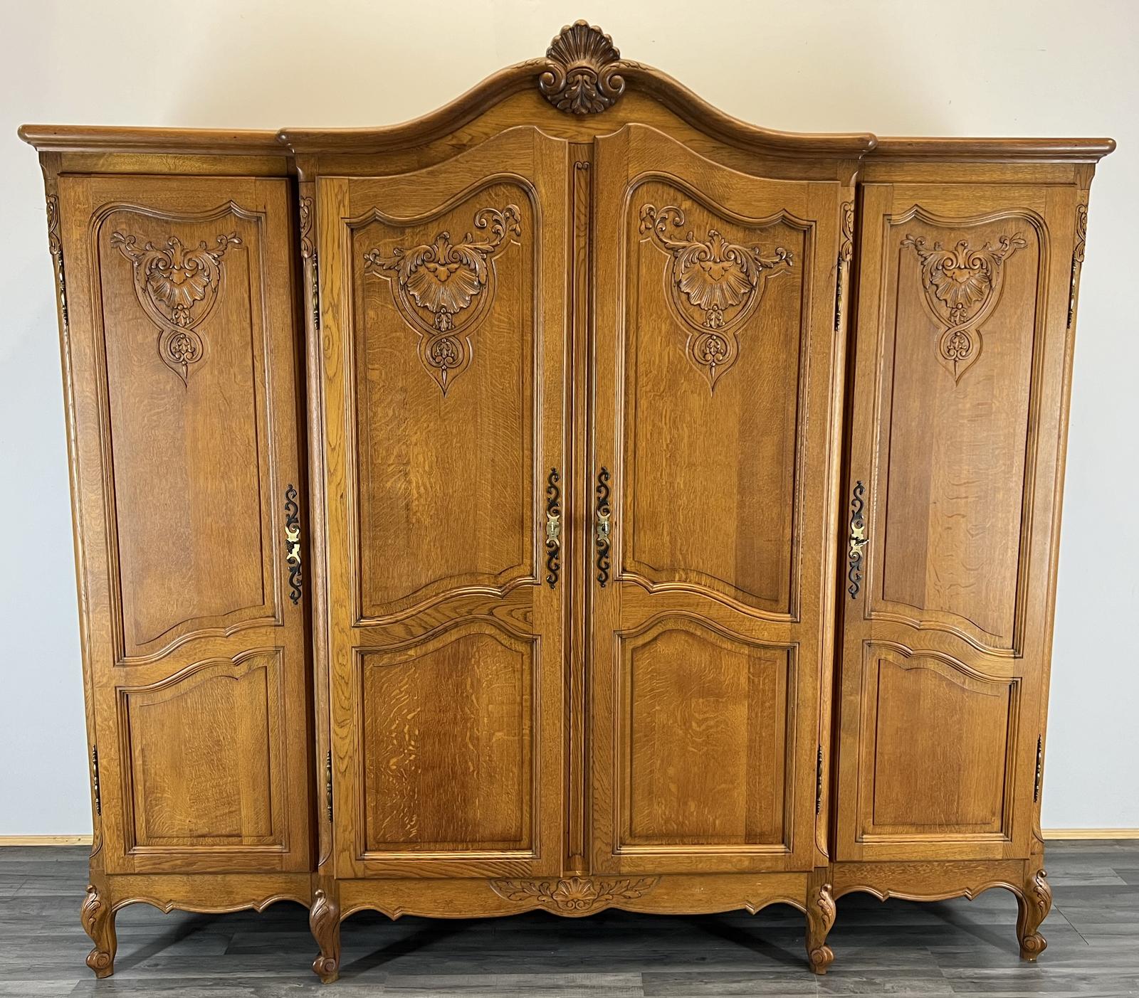 Wardrobe French Vintage Oak 4 Door Armoire Louis XVI Retro