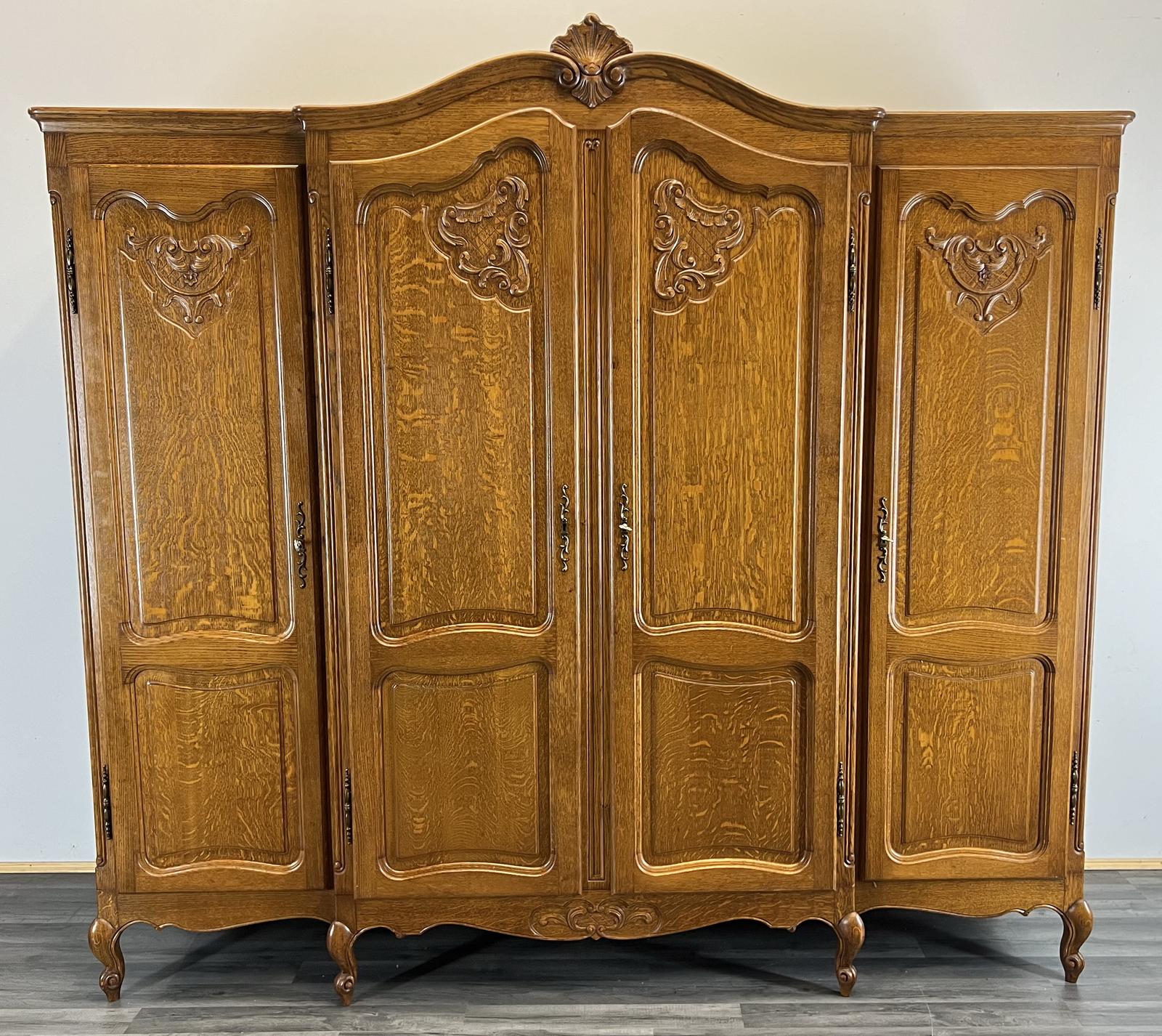 Wardrobe French Vintage Oak 4 Door Armoire Retro