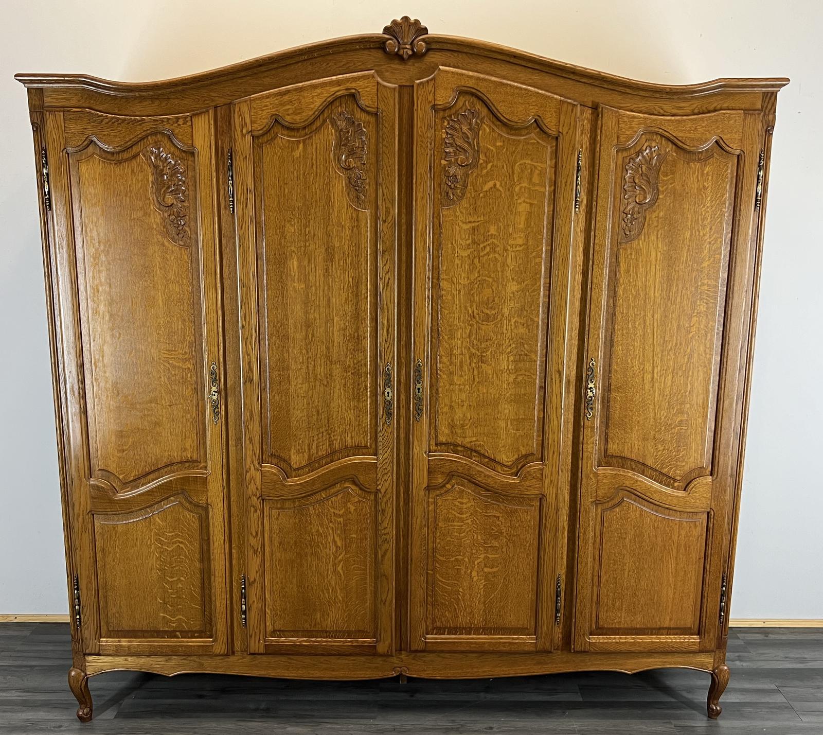 Wardrobe French Vintage Oak 4 Door Armoire Retro