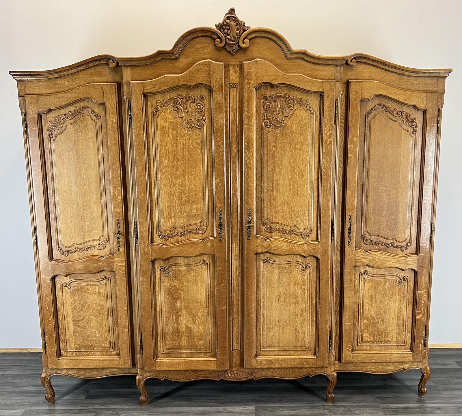 Wardrobe French Vintage Oak 4 Door Armoire Retro