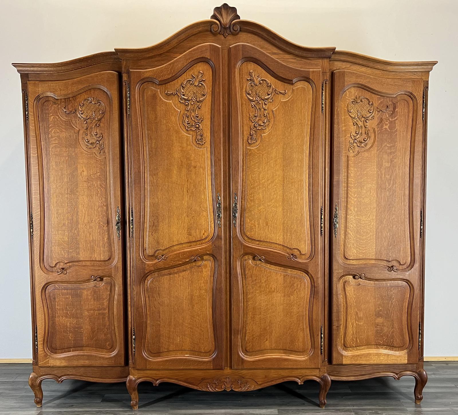 Wardrobe French Vintage Oak 4 Door Armoire Retro