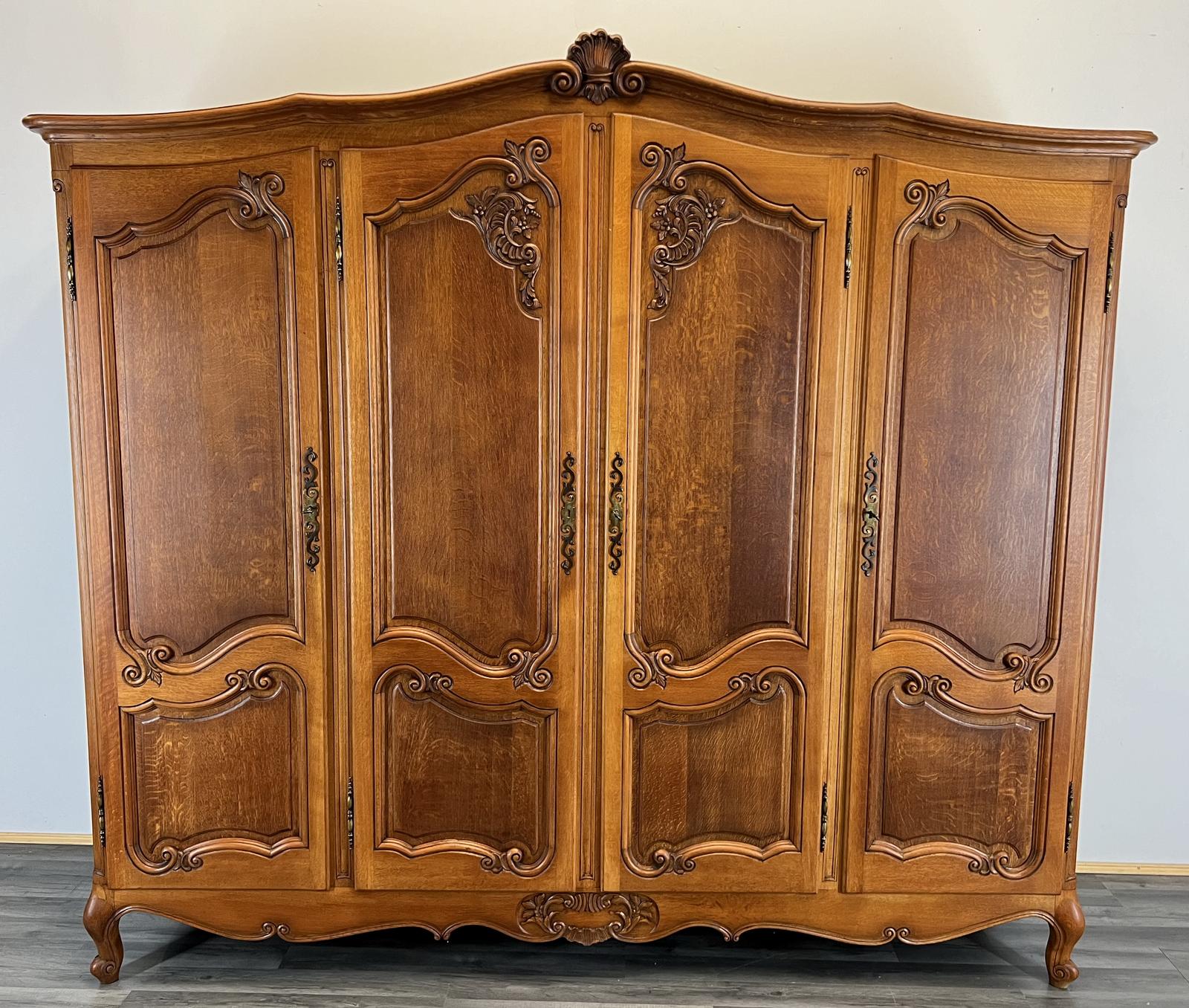 Wardrobe French Vintage Oak 4 Door Armoire Retro