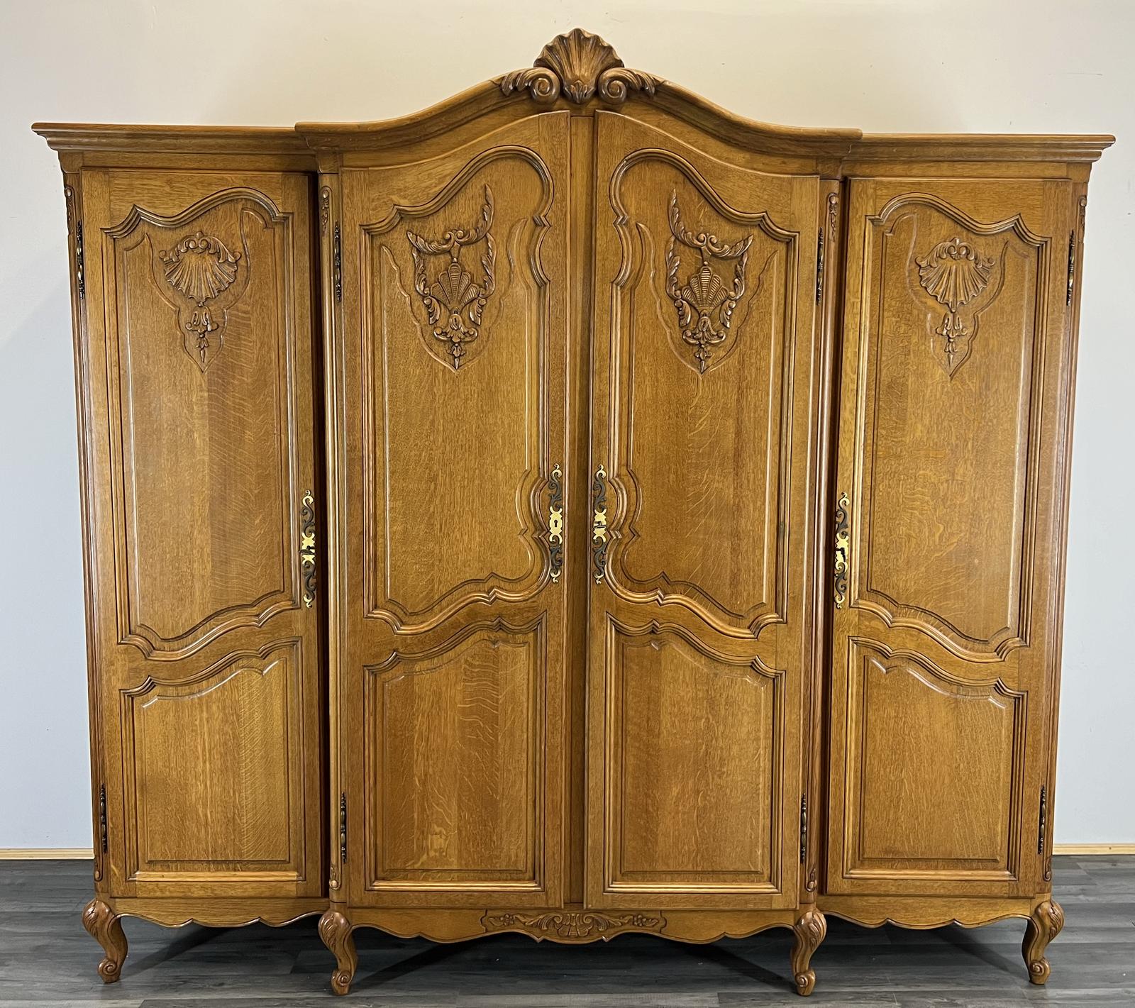 Wardrobe French Vintage Oak 4 Door Armoire Retro