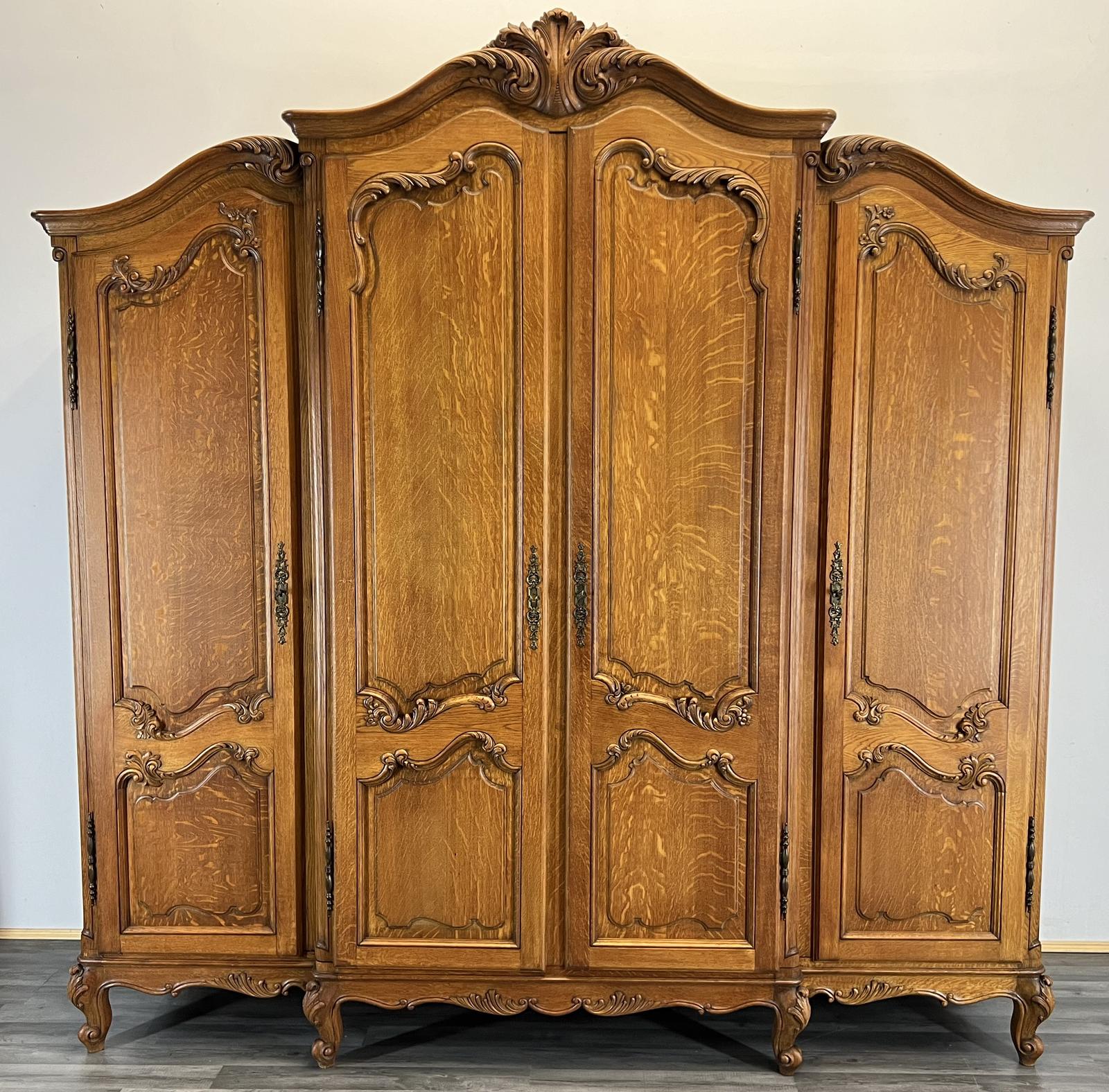 Wardrobe French Vintage Oak 4 Door Armoire Retro