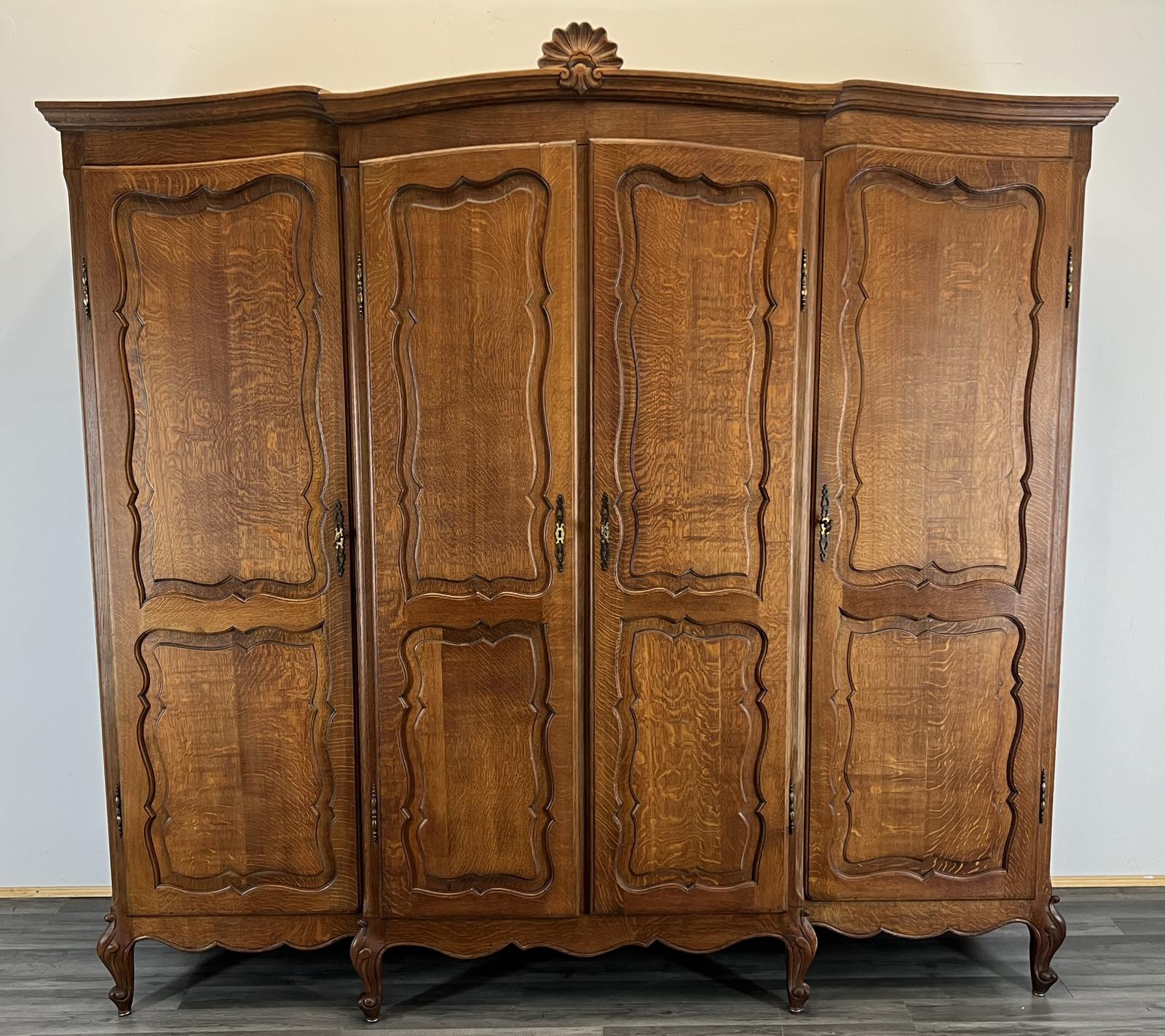 Wardrobe French Vintage Oak 4 Door Armoire Retro