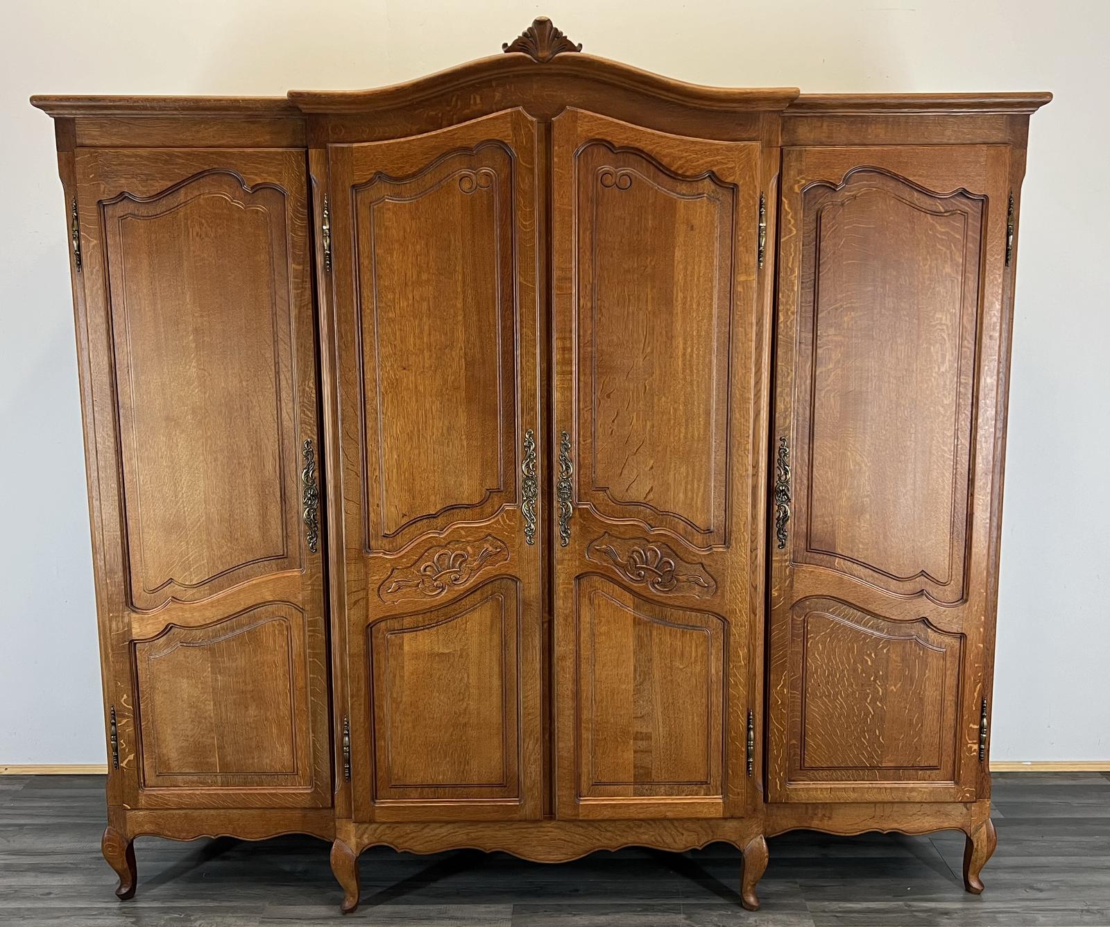 Wardrobe French Vintage Oak 4 Door Armoire Retro