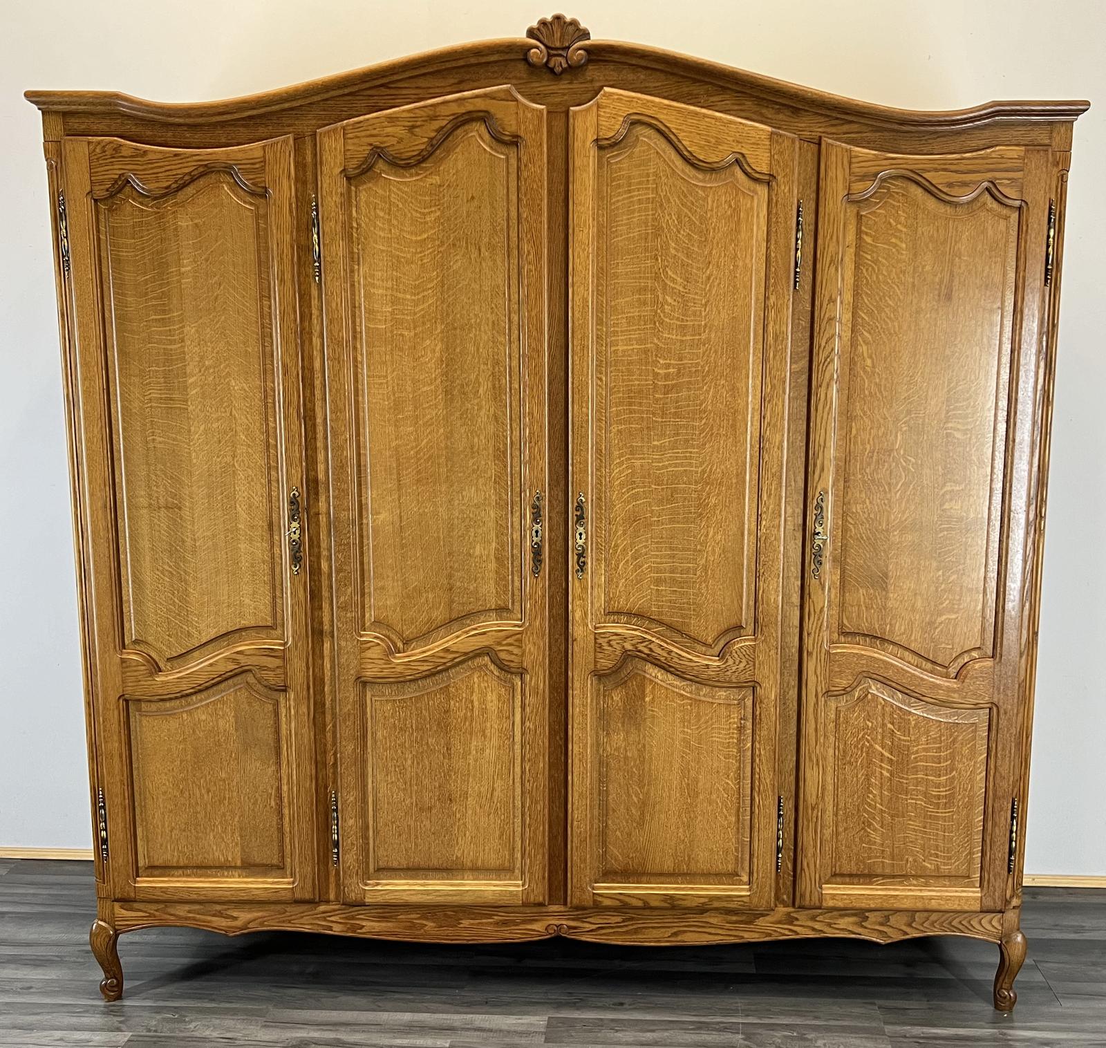 Wardrobe French Vintage Oak 4 Door Armoire Retro
