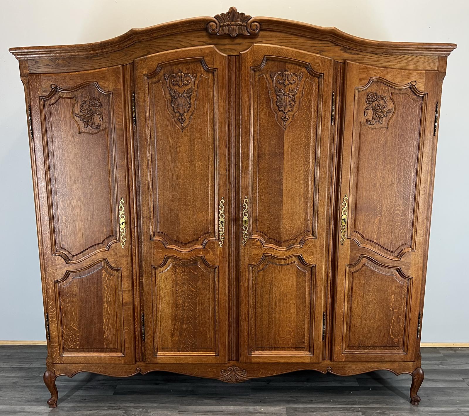 Wardrobe French Vintage Oak 4 Door Armoire Retro Closet