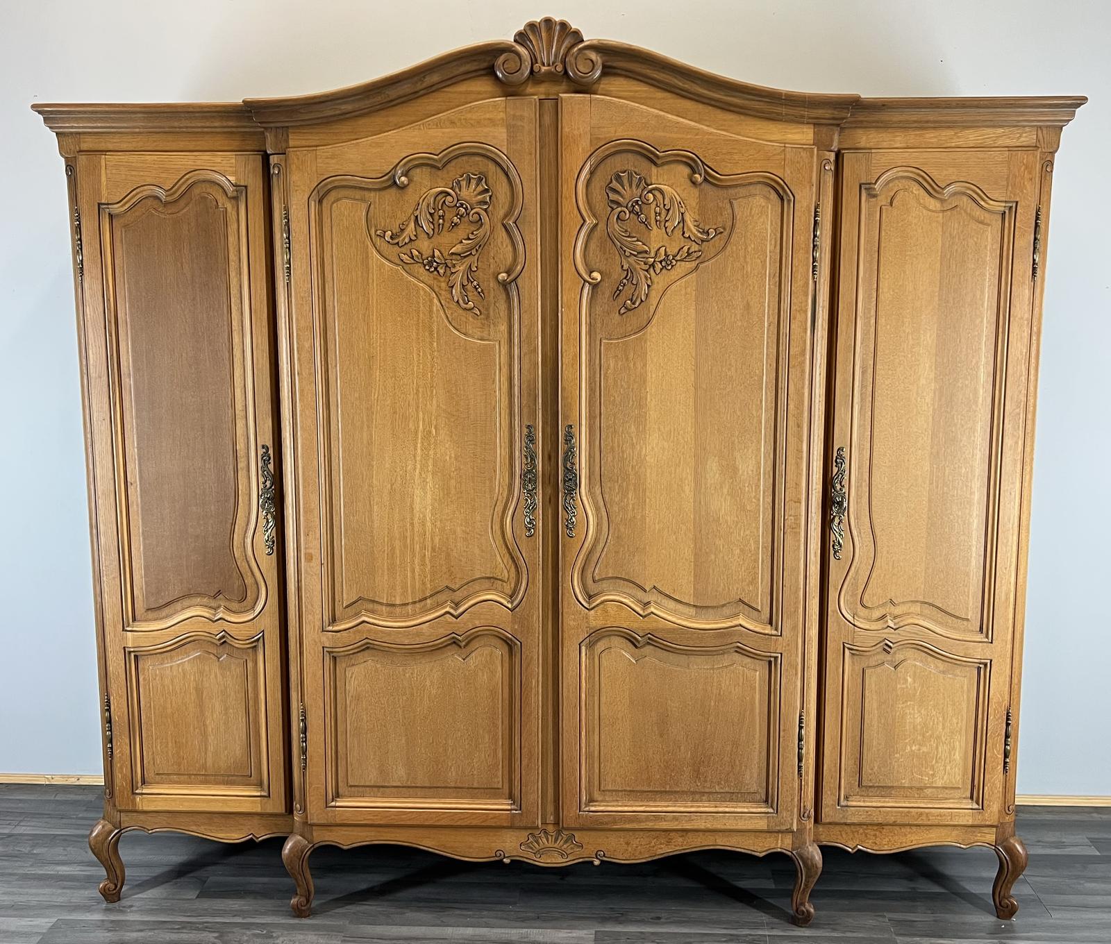 Wardrobe French Vintage Oak 4 Door Armoire Retro Closet