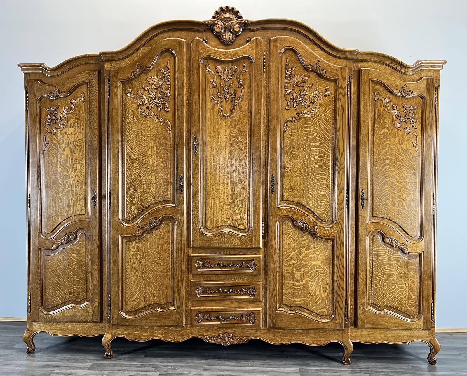 Wardrobe French Vintage Oak 5 Door Armoire Louis XVI Retro Closet