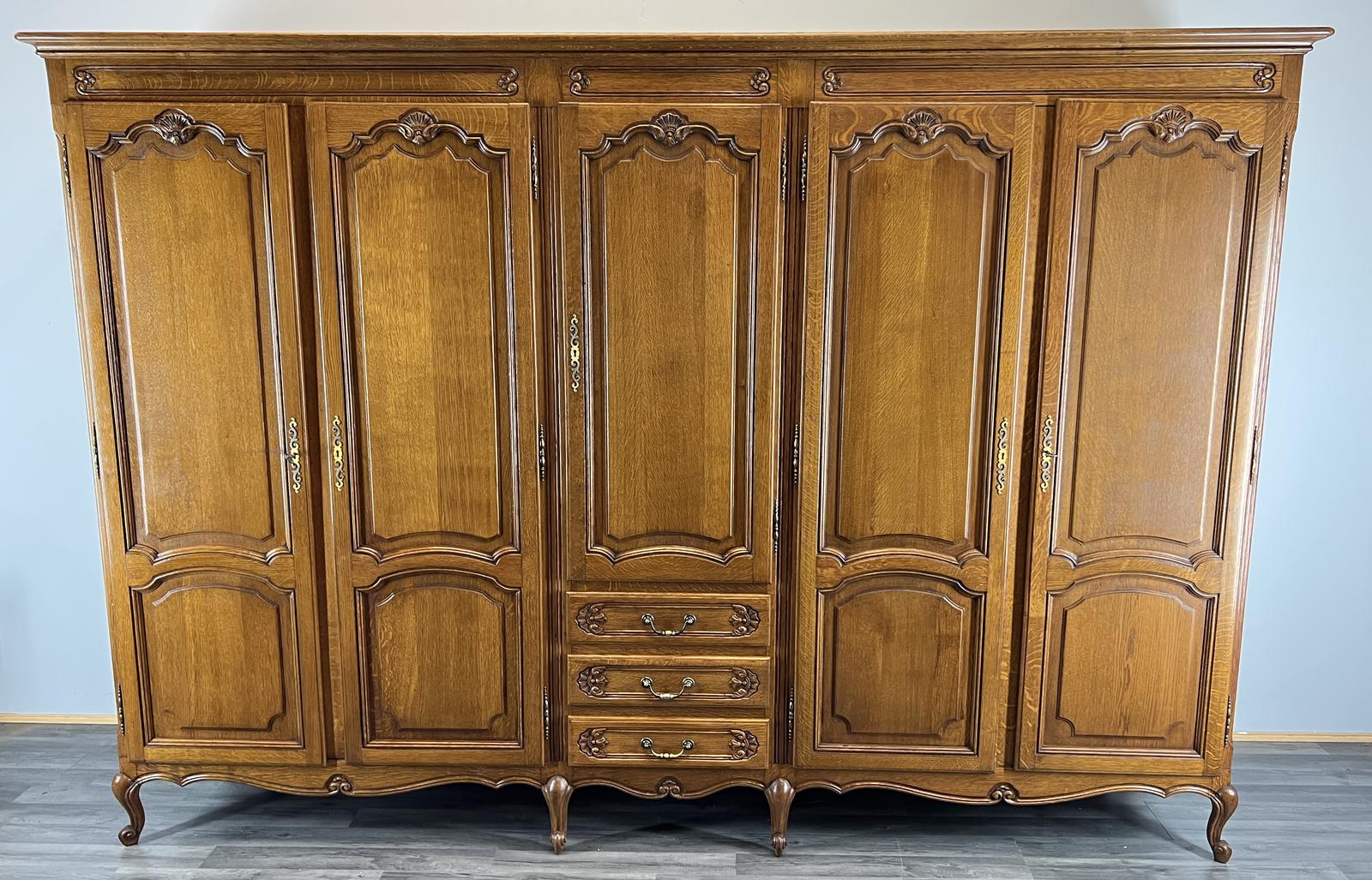 Wardrobe French Vintage Oak 5 Door Armoire Retro Closet