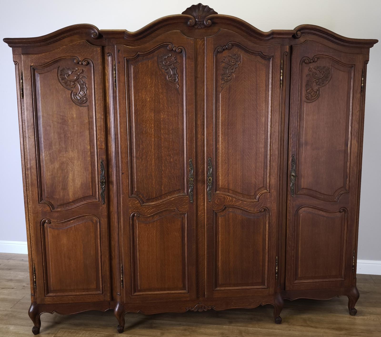 Wardrobe Vintage French Style Four Door Oak Carved Armoire