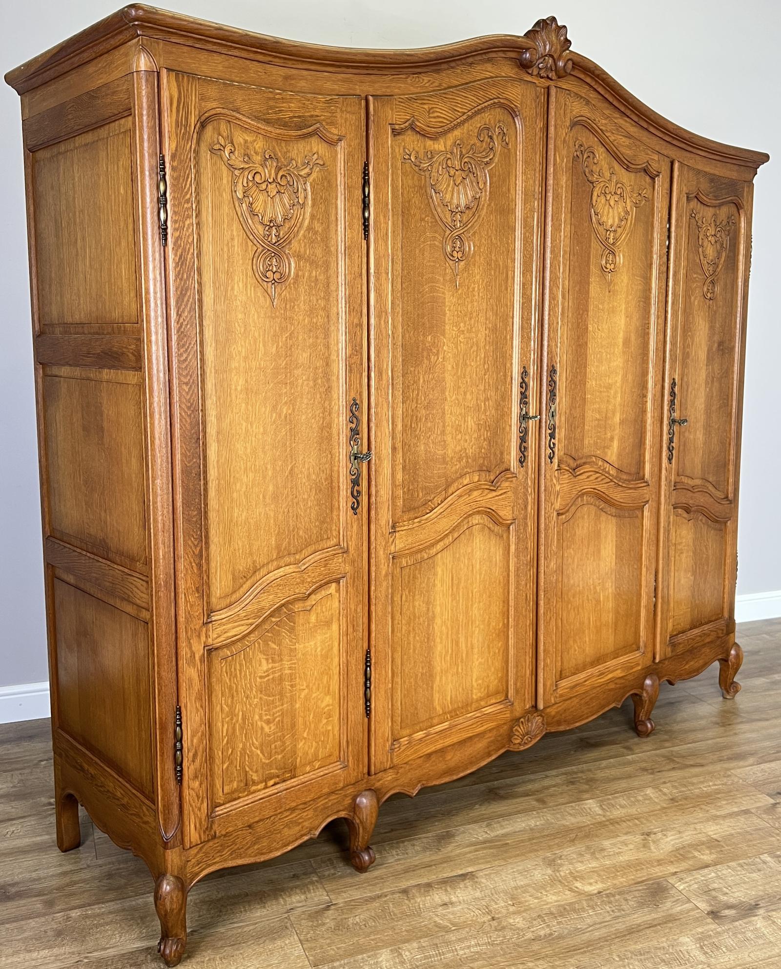 Wardrobe Vintage French Style Oak Four Door Armoire