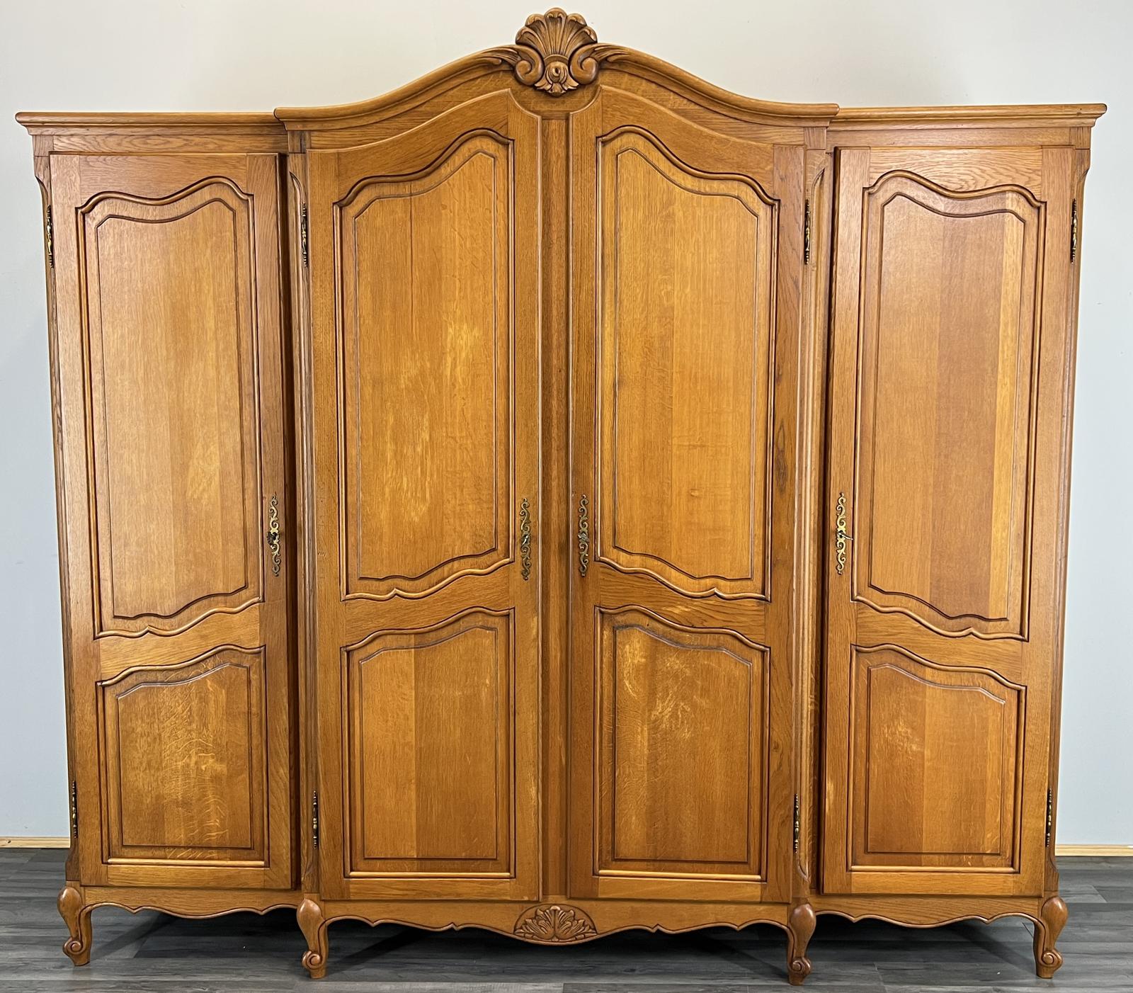 Wardrobe Vintage French Style Oak Four Door Carved Armoire