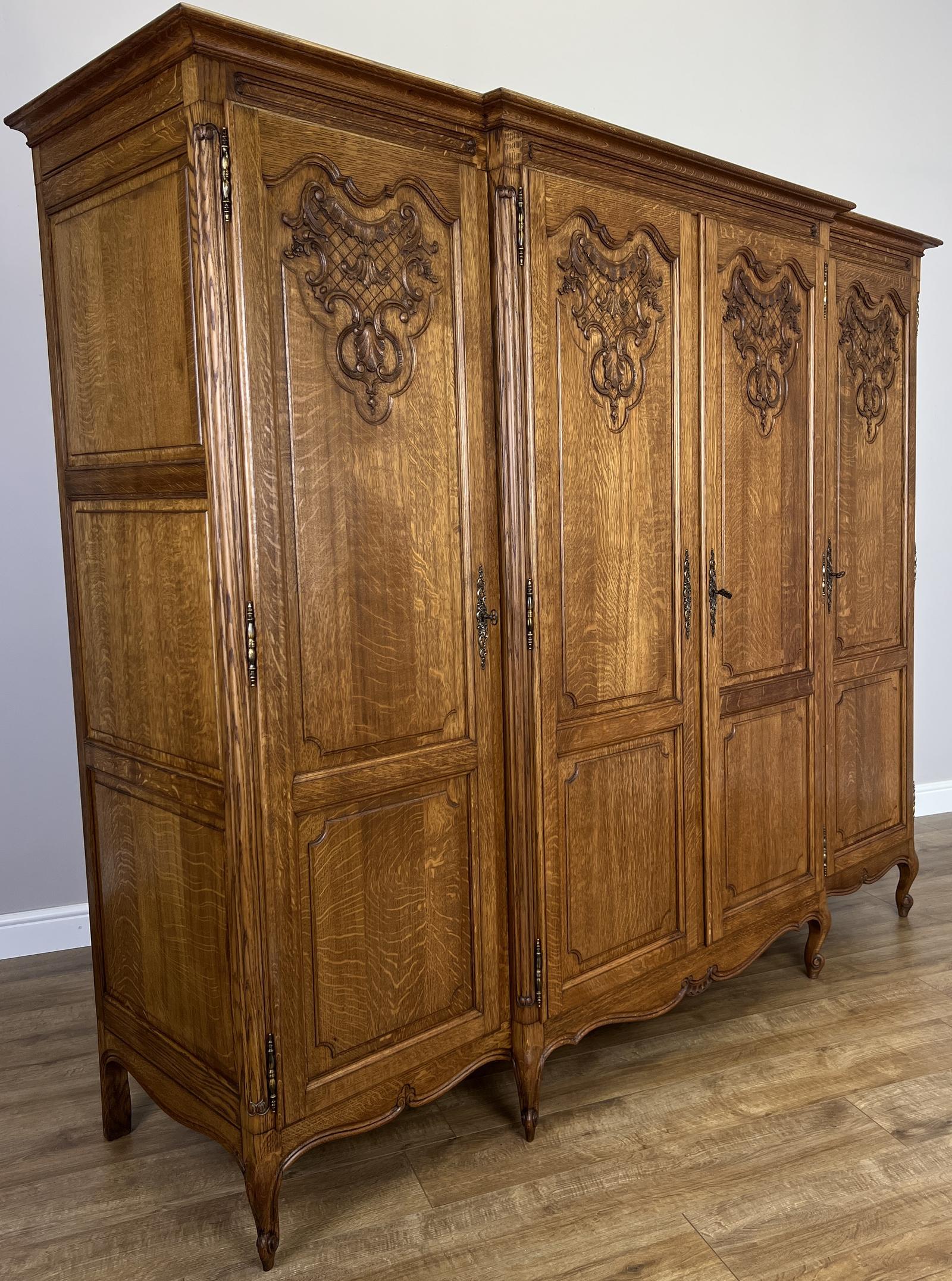 Wardrobe Vintage French Style Oak Four Door Carved Armoire