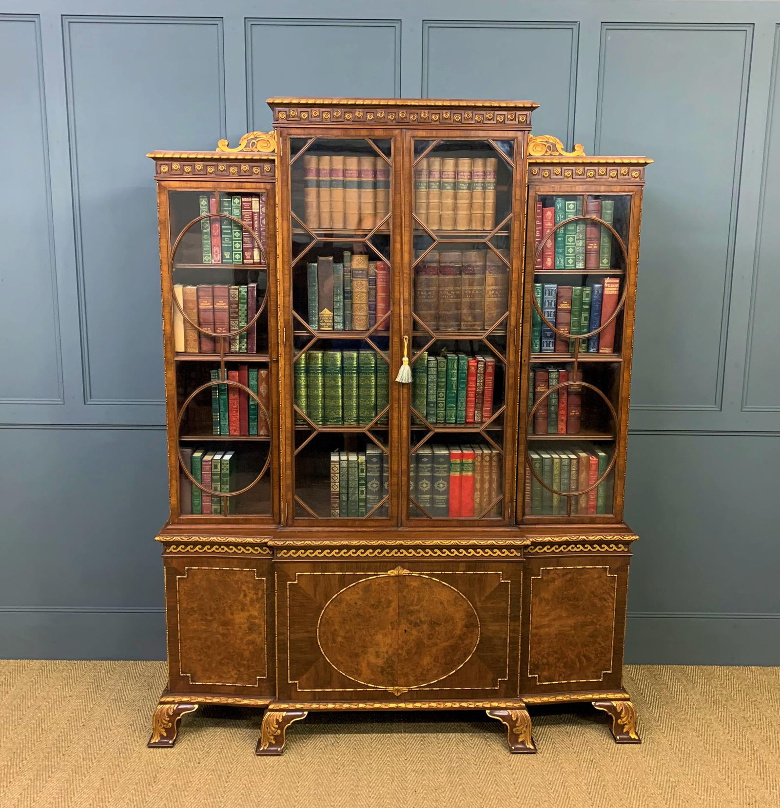 Waring and Gillow Burr Walnut Break Front Bookcase