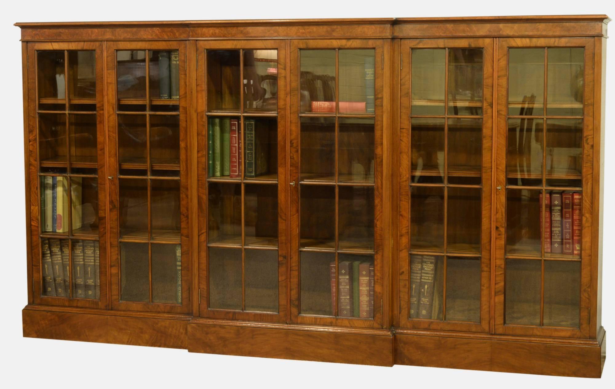 Waring & Gillow Glazed Walnut Breakfront Bookcase c.1910 (1 of 1)