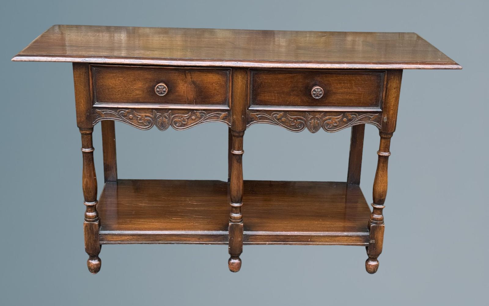 Waring & Gillow Oak Two Drawer Side Table / Sideboard / Serving Table