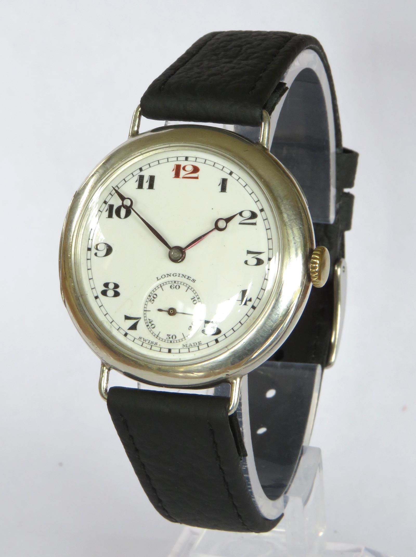 Watch : Antique Silver Longines Trench Wristwatch, 1933