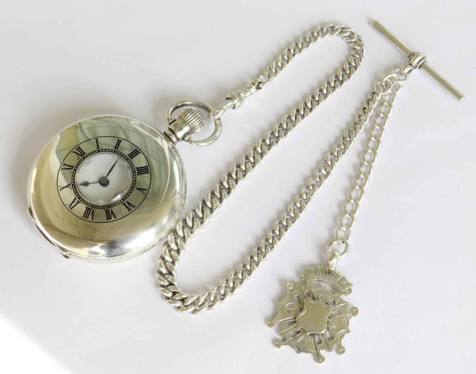 Watch: Antique Silver Mappin Half Hunter Pocket Watch & Chain
