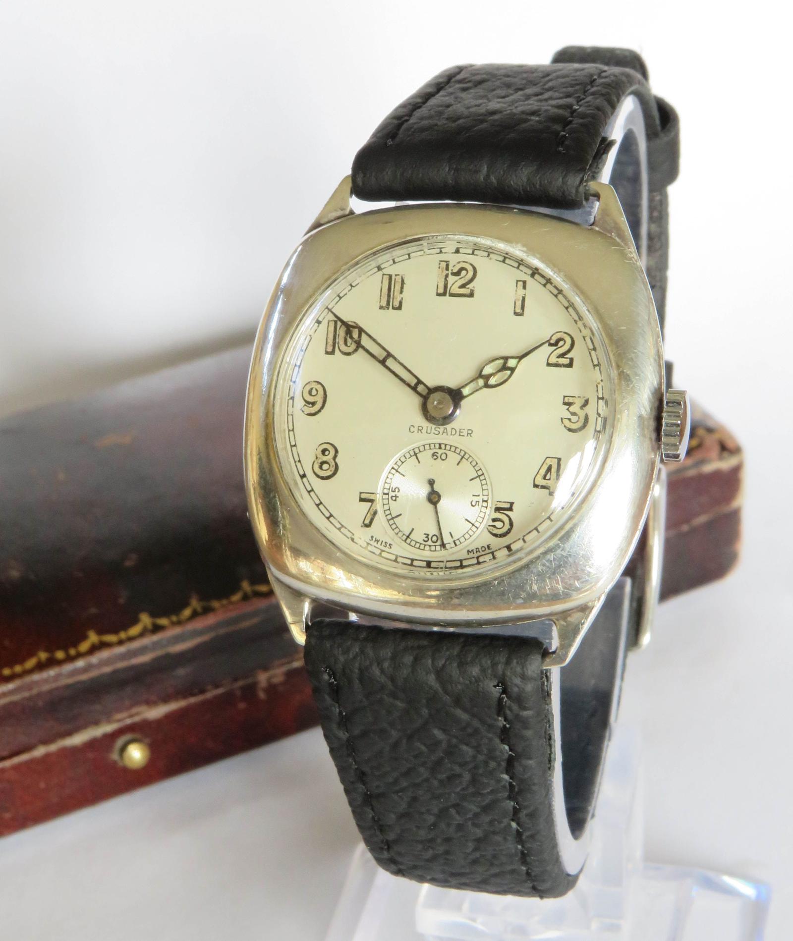 Watch: Antique Silver Mid-size Crusader Wrist Watch