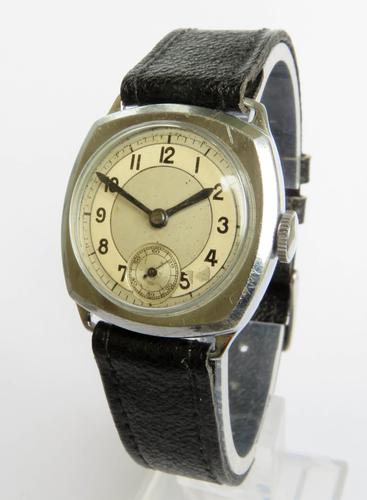 The watch measures 28mm wide excluding the winding crown, and 28mm high excluding the lugs. It was originally designed as a man’s watch but it would suit a slimmer wrist. The case is chrome plated while the case back is stainless steel. The case is in good condition with just light surface marks, overall very nice for a 1930s piece.