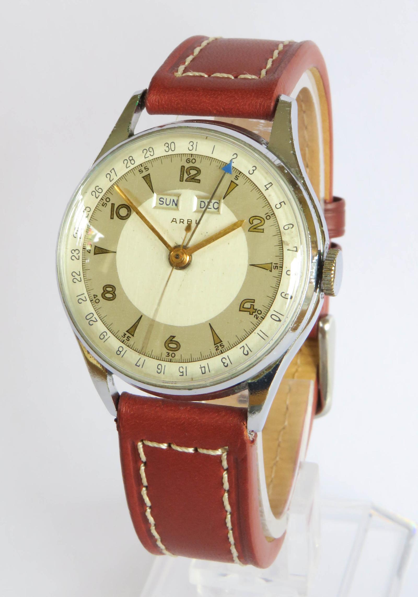 The Vintage Wrist Watch Company has clarified that the Watch : Gents 1940s Arbu Triple Date Wrist Watch (LA556794) is genuinely of the period declared with the date/period of manufacture being 1940s