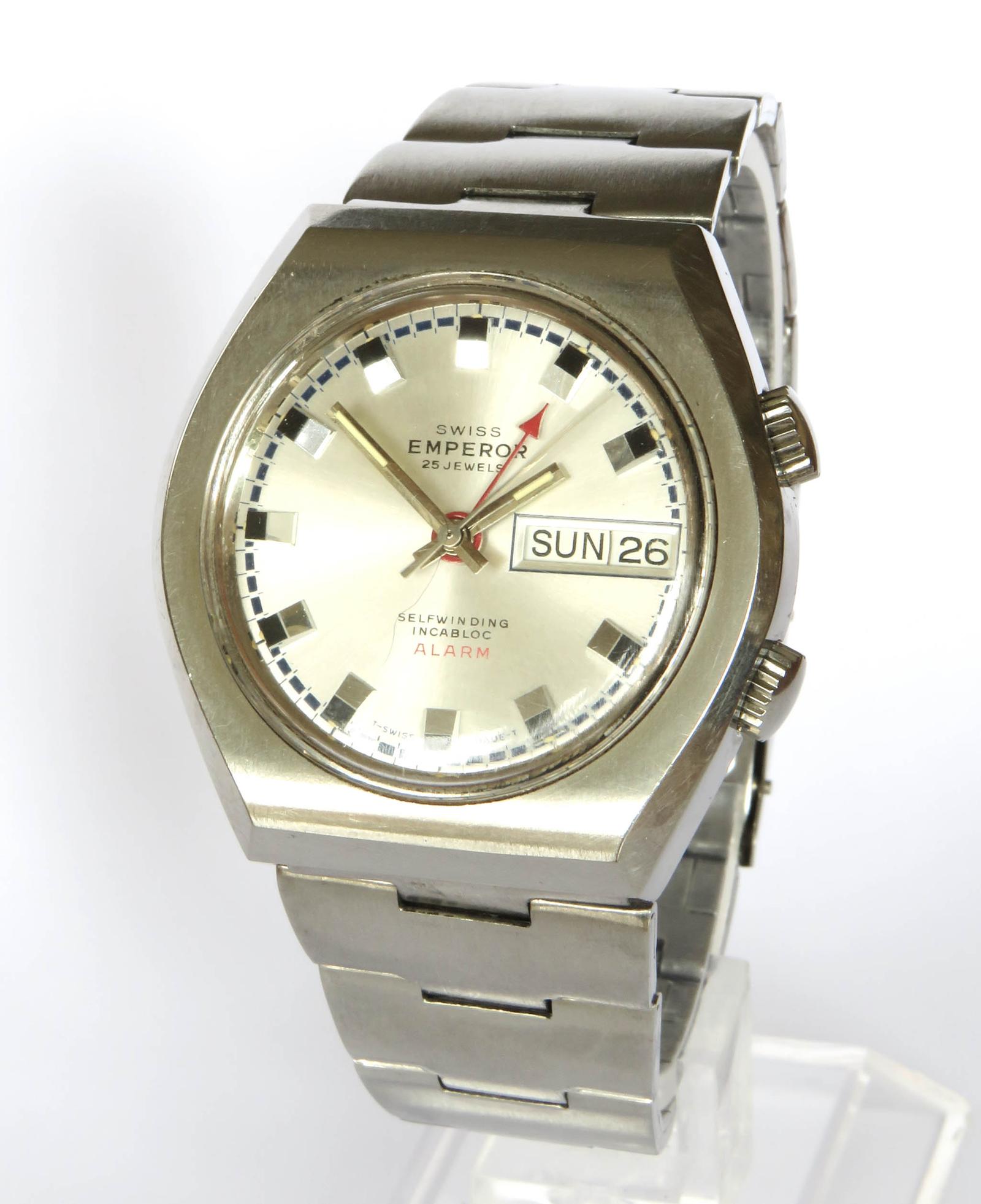 The Vintage Wrist Watch Company has clarified that the Watch: Gents 1970s Swiss Emperor Alarm Wrist Watch (LA561396) is genuinely of the period declared with the date/period of manufacture being 1970s