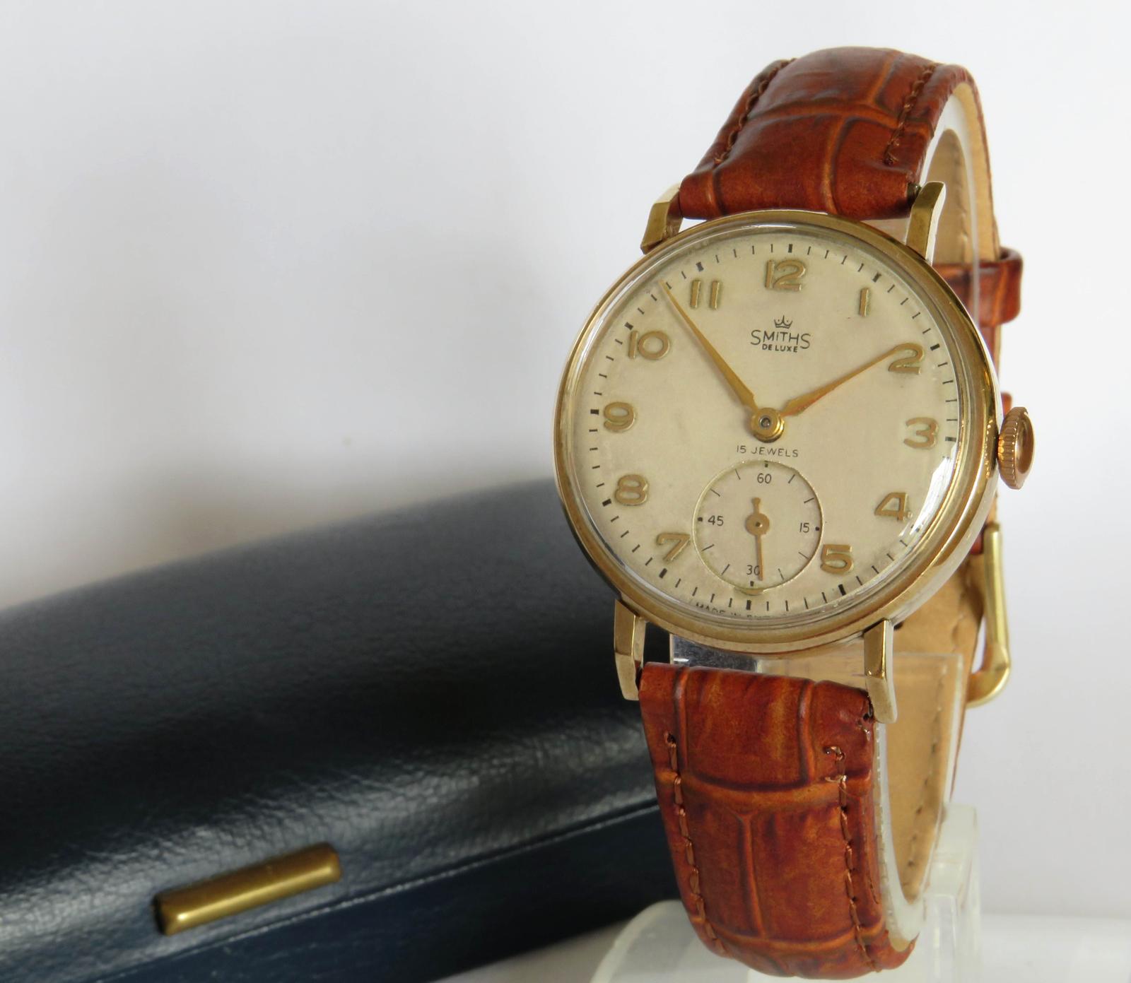Watch: Gents 9ct Gold Smiths De Luxe Wrist Watch, Austin Motors 1954