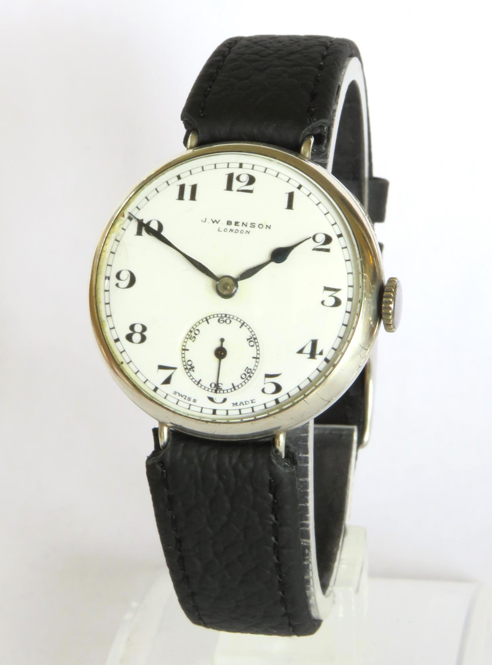 Watch: Gents J W Benson Silver Wrist Watch, 1936