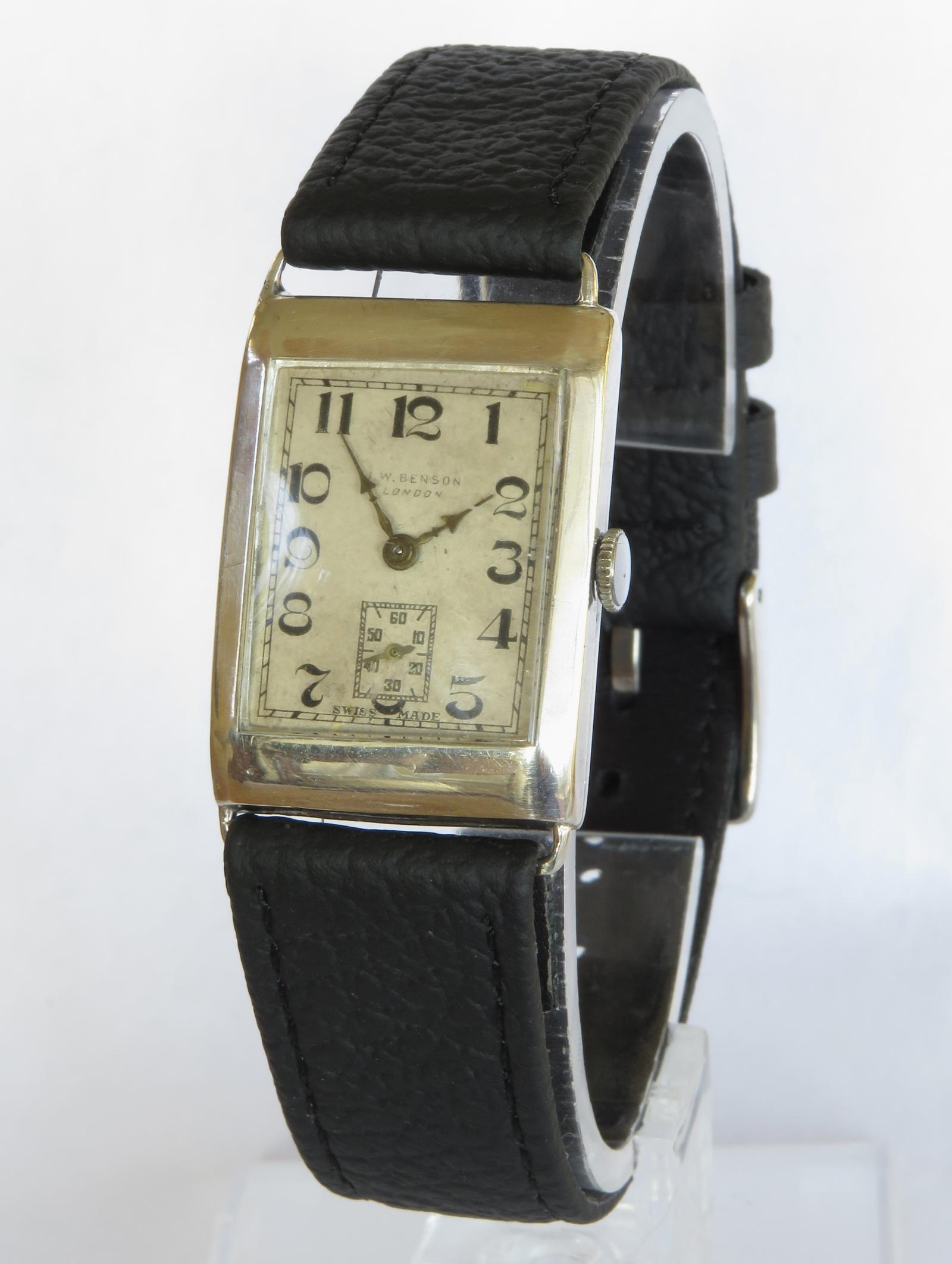 Watch: Mid-size Silver J W Benson Wrist Watch 1938