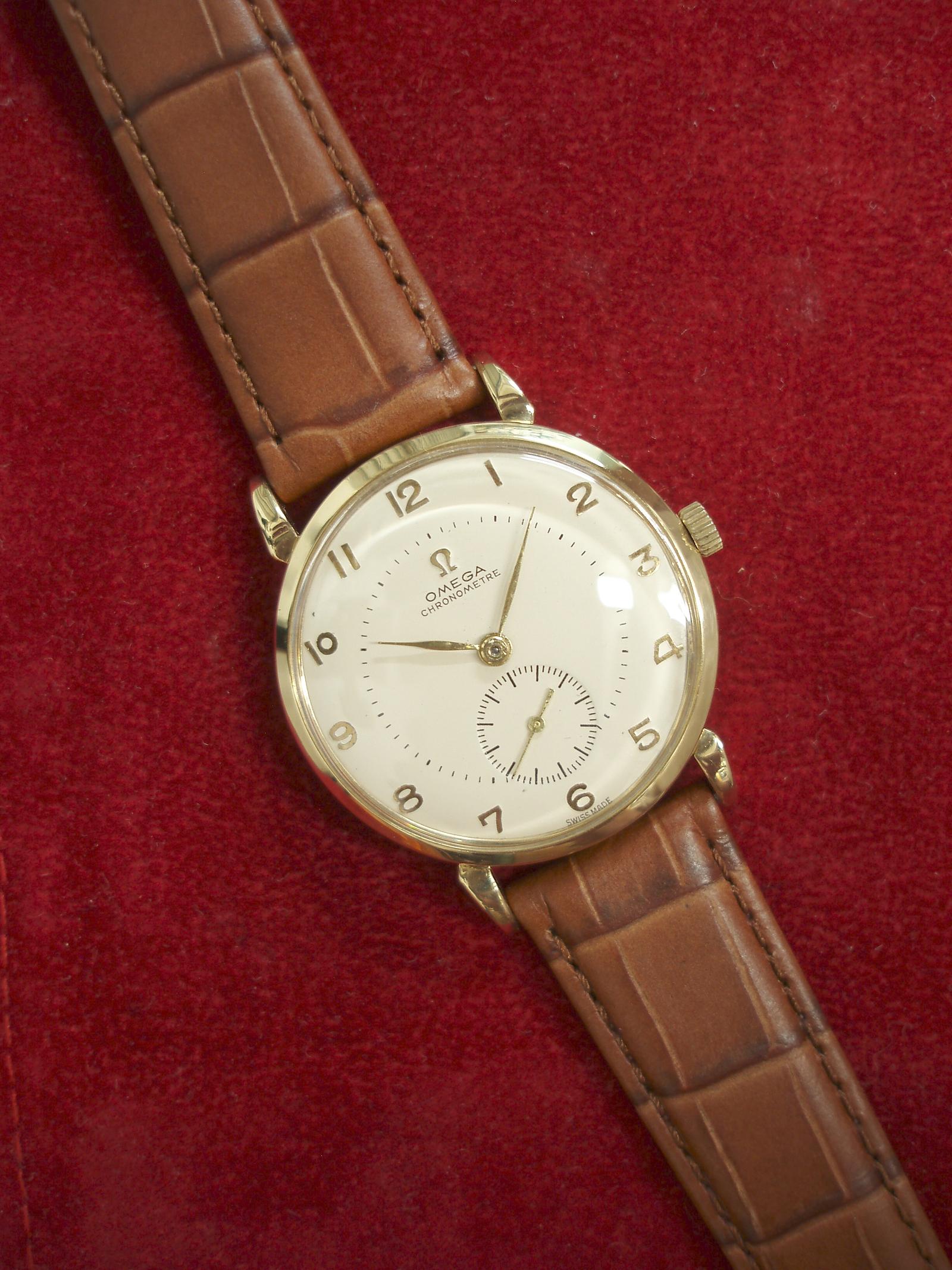 Chamade Antiques has clarified that the Watch: Omega Chronometre 18ct Gold Bumper Automatic (LA566145) is genuinely of the period declared with the date/period of manufacture being 1950
