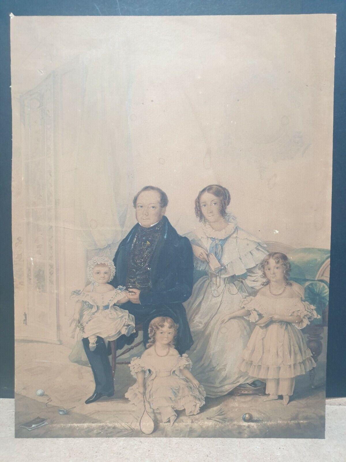 Watercolor French of the Very Highest Quality Group Family Portrait Sporting