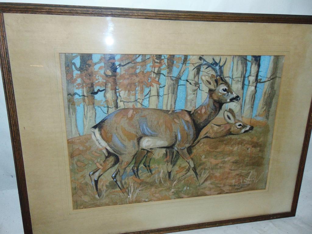 Watercolour 'Deer' by R. Gudgeon - Scottish